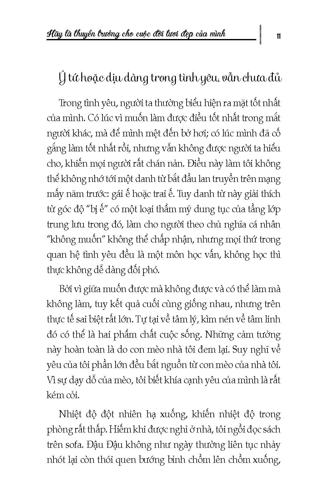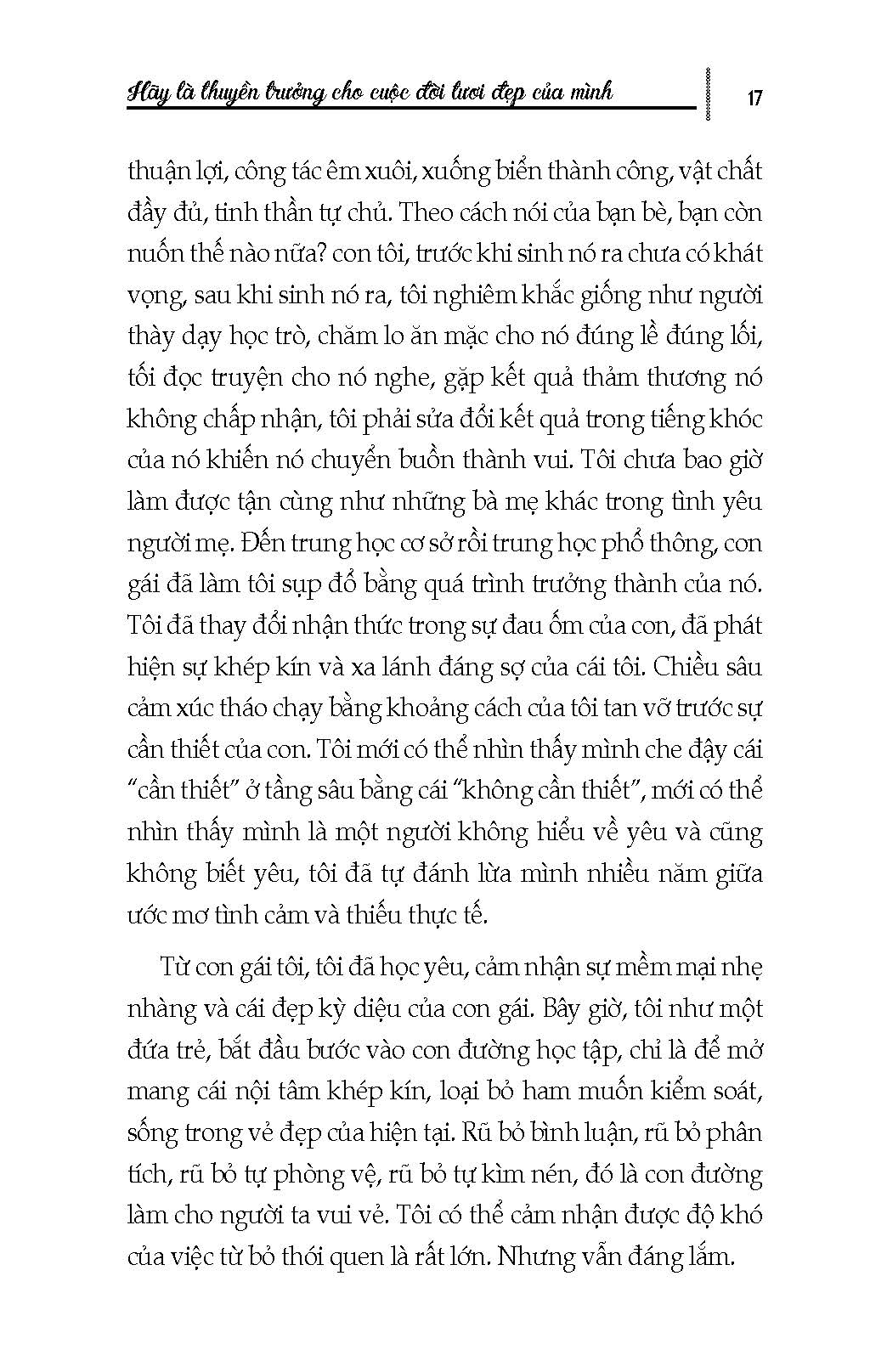 Tuyển tập những bài viết, câu chuyện về cuộc sống của tác giả, giúp mọi người có cái nhìn tích cực và toàn diện hơn về quá trình rèn luyện và hoàn thiện bản thân, để hạnh phúc và thành đạt hơn trong cuộc sống.