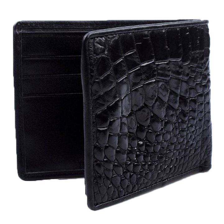 Ví/Bóp nam Huy Hoàng da bò vân cá sấu màu đen 2111