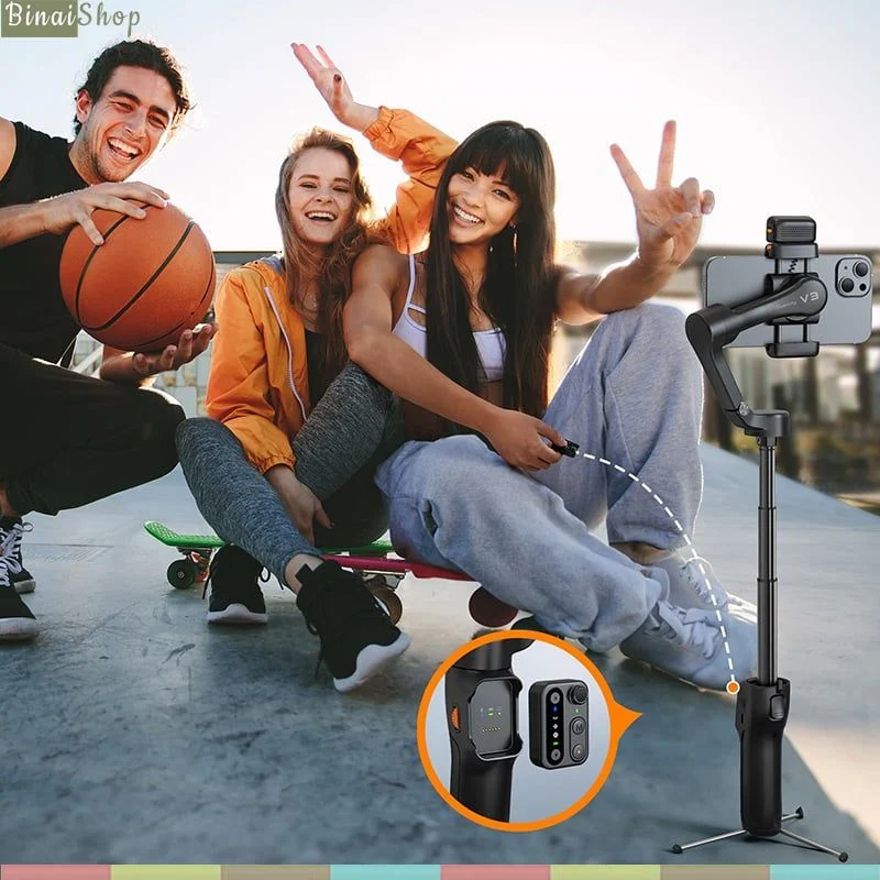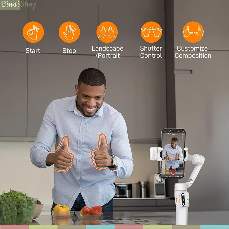 - Gimbal chống rung cho điện thoại Hohem Isteady V3 sử dụng dụng thuật toán iSteady 8.0 mạnh mẽ, tích hợp cảm biến AI điều khiển bằng cử chỉ, thân gimbal kéo dài và bộ điều khiển