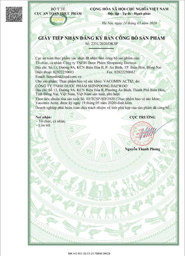 Thực phẩm bảo vệ sức khỏe: VACOMIN ACTIZ