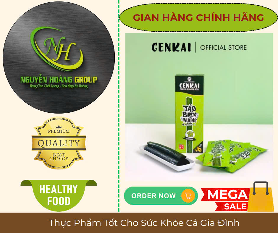 Tên sản phẩm: RONG BIỂN NƯỚNG CUỘN Có 2 Vị : Tự Nhiên & Vị Cay NÓNG Thành phần: Rong biển 68%, dầu ngô 26.7%, dầu mè 4.3%, muối biển 1% Lá Rong biển có