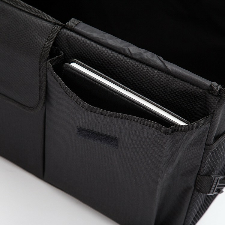 Hộp để đồ đa năng gấp gọn ở cốp sau xe hơi ô tô. Khi không dùng gấp gọn lại như 1 chiếc túi xách kích thước 40x26cm, khi kéo ra thành hộp đồ lớn kích thước 56x40x26cm - Tạo không gian lưu trữ đồ đạc thoải mái và tiện nghi trong chiếc xe hơi của bạn. - Gọn gàng, ngăn nắp hơn. Không còn tình trạng bừa bộn - Không còn tình trạng tìm kiếm khắp nơi mà không thấy đồ cần thiết đâu nữa. - Tiết kiệm được diện tích trên xe, xe sạch sẽ hơn, sang trọng hơn - Có thể dễ dàng gập lại khi không dùng đến Chất liệu: Vải dù, rất bền, chống bẩn Màu đen, trọng lượng 500g
