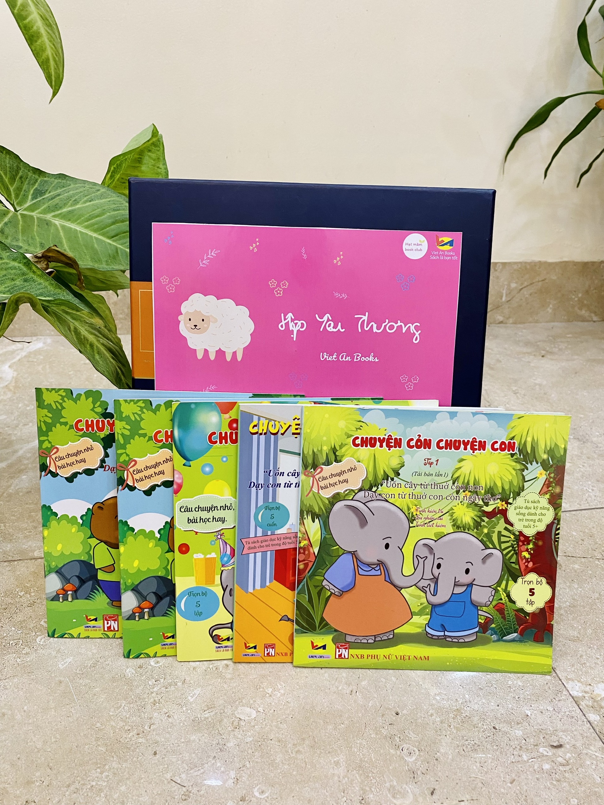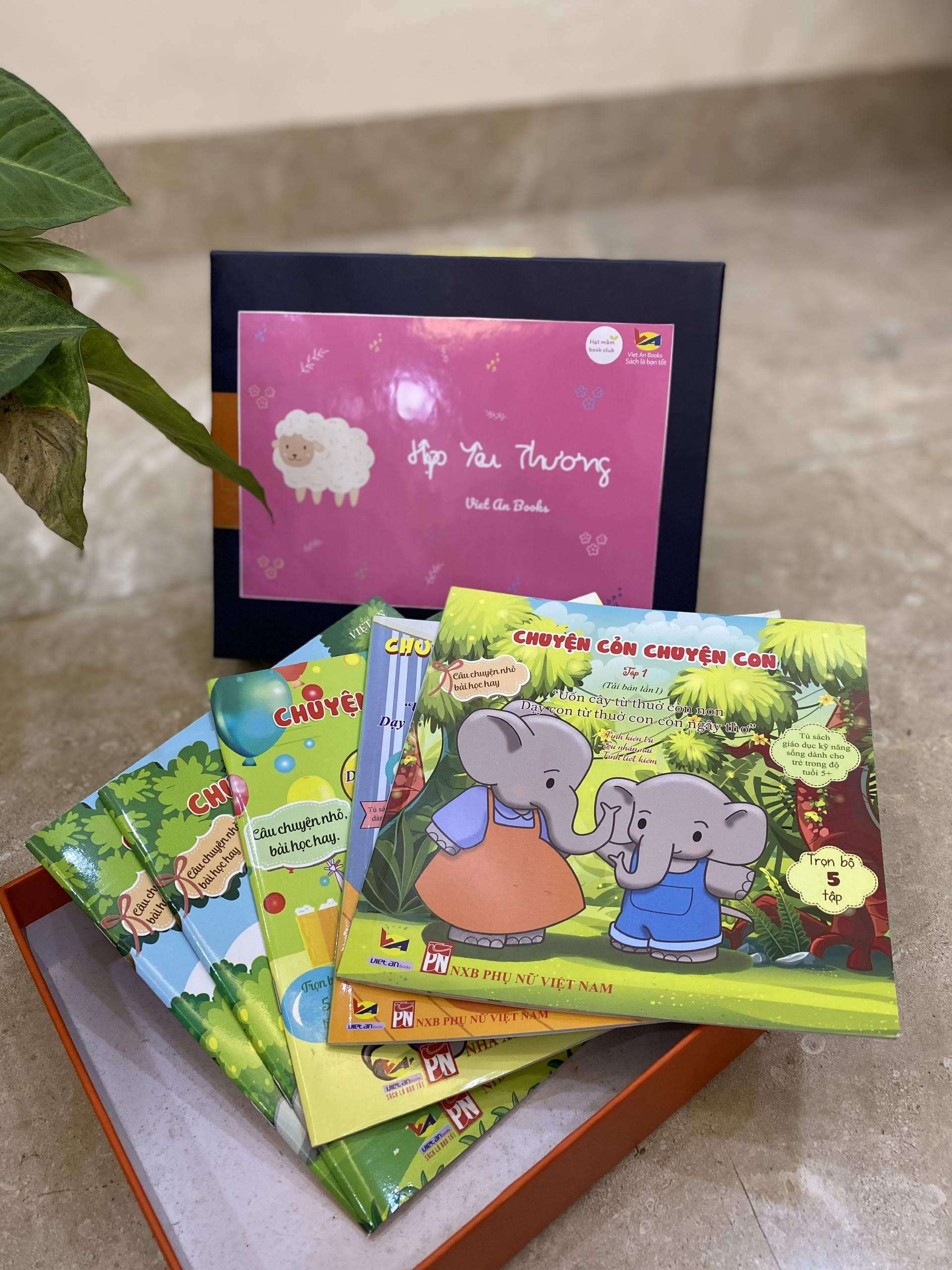 HỘP YÊU THƯƠNG 3 là hộp quà tặng tri thức dành cho bé từ 3 - 6 tuổi với set quà gồm có: combo 05 cuốn truyện thiếu nhi giáo dục tri thức - rèn luyện kỹ năng đặc săc: CUYỆN CỎN CHUYỆN CON (Tập 1+2+3+4+...