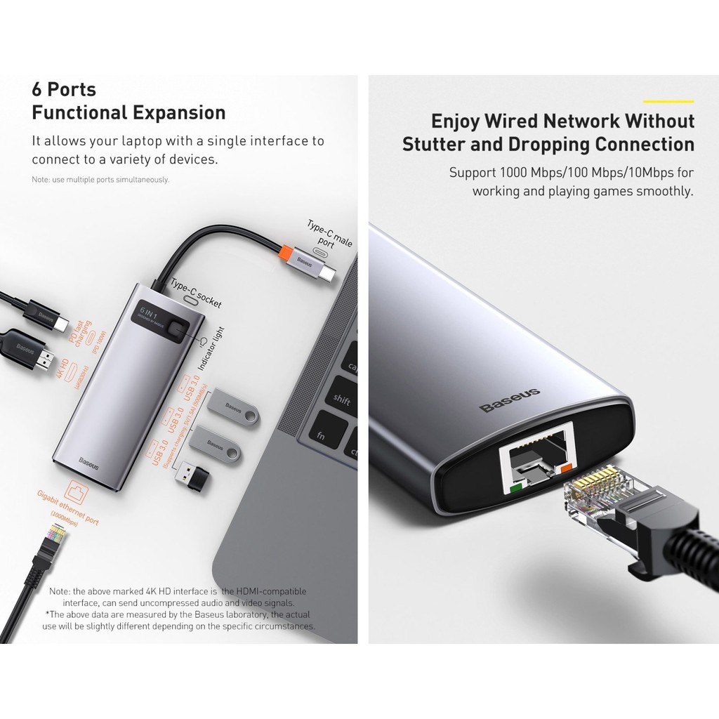 Bộ Hub mở rộng 6 in 1 Baseus Metal Gleam