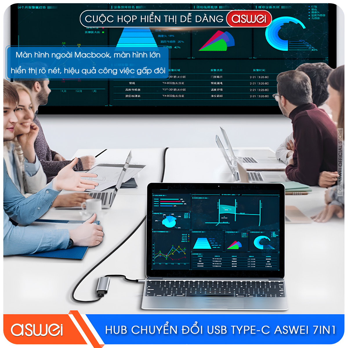 ✨Hub Chuyển Đổi USB Type C ASWEI 7 in 1 - HDMI, USB 3.0, SD, TF, USB C, PD 100W Tốc Độ Cao - Hàng Chính Hãng