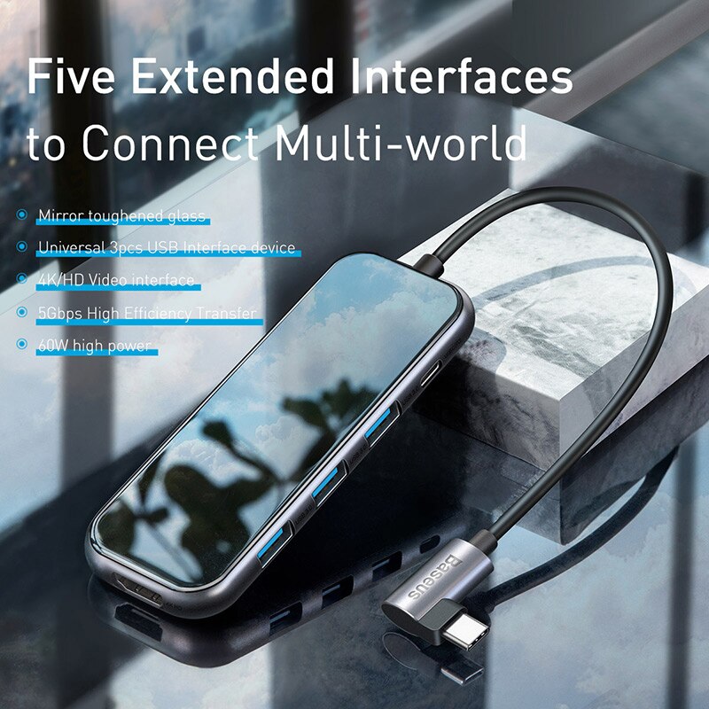 Hub sạc nhanh chia cổng đa năng 5 in 1 PD Type-C dành cho Macbook Pro / Smartphone hiệu Baseus Multi thành cổng Type-C PD 3.0, 3 cổng USB 3.0, cổng HDMI chuẩn 4k - Hàng chính hãng