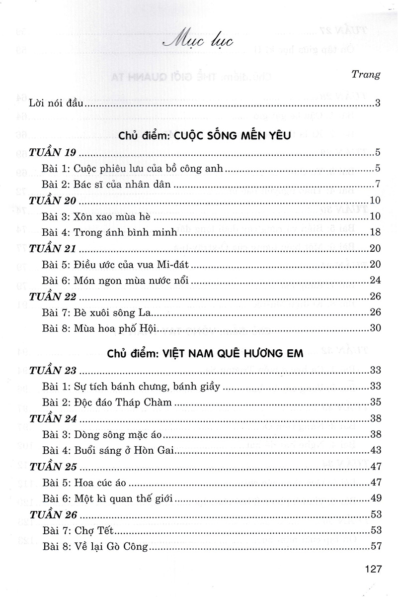 Bộ sách gồm đầy đủ các tuần, bài, chủ điểm với 4 nội dung: Đọc, Luyện từ và câu, Nói và nghe, Viết.