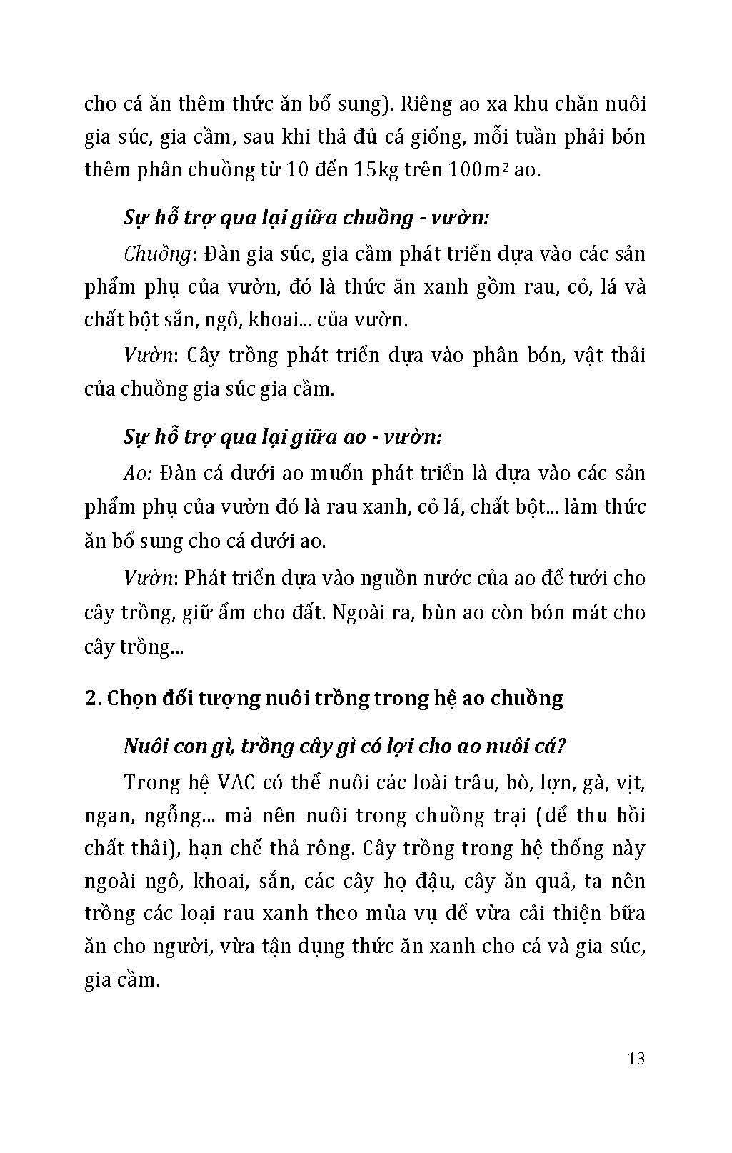 Hướng dẫn kỹ thuật nuôi cá trong các môi trường sống khác nhau như ao, hồ, ao nước tĩnh, ao nước chảy, ruộng lúa, nuôi thả cá giống; kỹ thuật nuôi ếch, lươn như đặc điểm, chuẩn bị giống, cách nuôi, phòng trị bệnh...