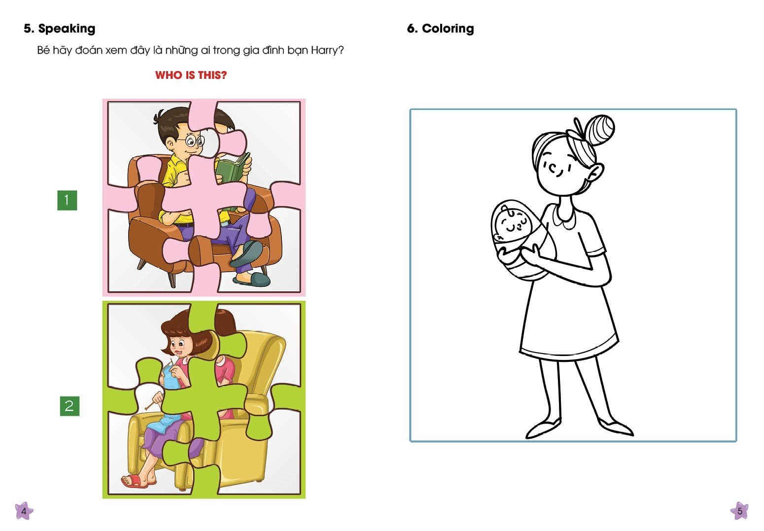 - Phần 6 Coloring (Tô màu) Đặc biệt, đi kèm với bộ sách này còn có link nghe qua giọng đọc thầy giáo bản ngữ, có kinh nghiệm lâu năm trong việc dạy tiếng Anh cho để các bé ôn luyện theo, tạo thói quen phát âm chuẩn ngay từ những buổi đầu làm quen và học tiếng Anh.