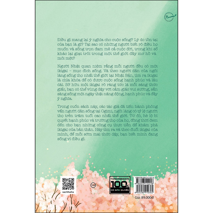 Trong cuốn sách này, các tác giả đã tiến hành phỏng vấn người dân sống tại làng Ogimi, ngôi làng có tỷ lệ người thọ trên trăm tuổi cao nhất thế giới. Từ đó, hé lộ bí quyết hạnh phúc và trường thọ của họ, đồng thời đem đến cho bạn những công cụ thực tiễn để khám phá ikigai của bản thân.