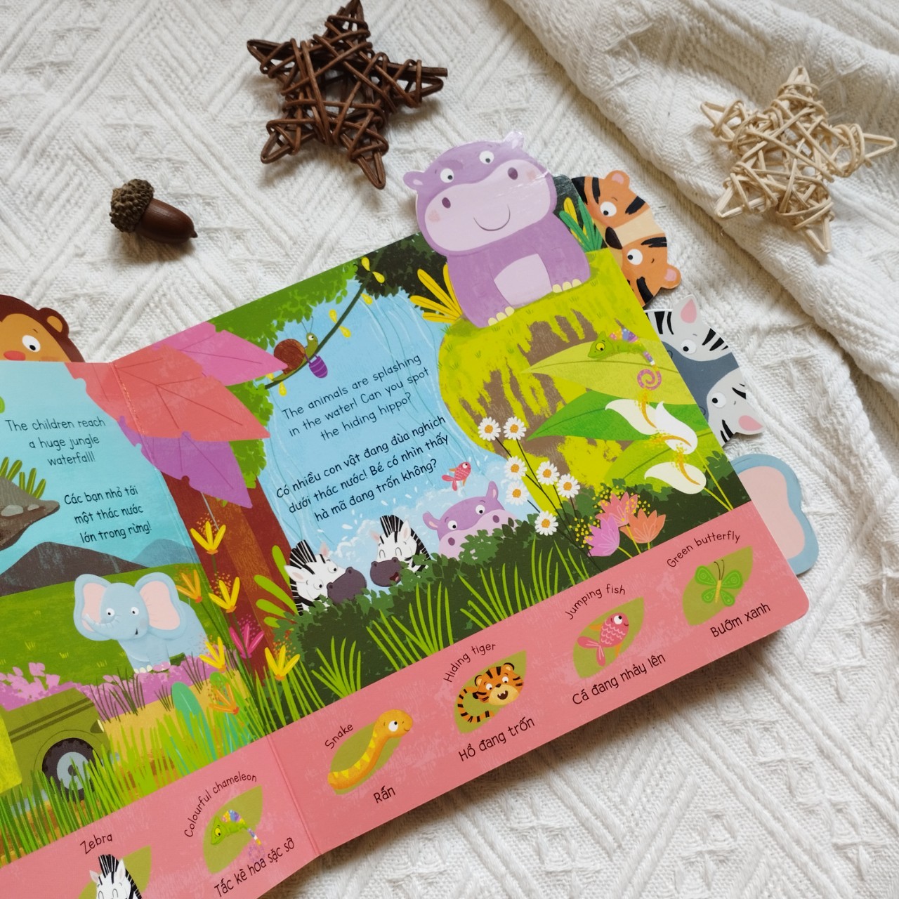 Bé hãy cùng các bạn nhỏ phiêu lưu một chuyến bằng xe cắm trại để khám phá khu rừng nhé! Mỗi trang sách ẩn chưa rất nhiều điều thú vị cho các bé khám phá đấy.