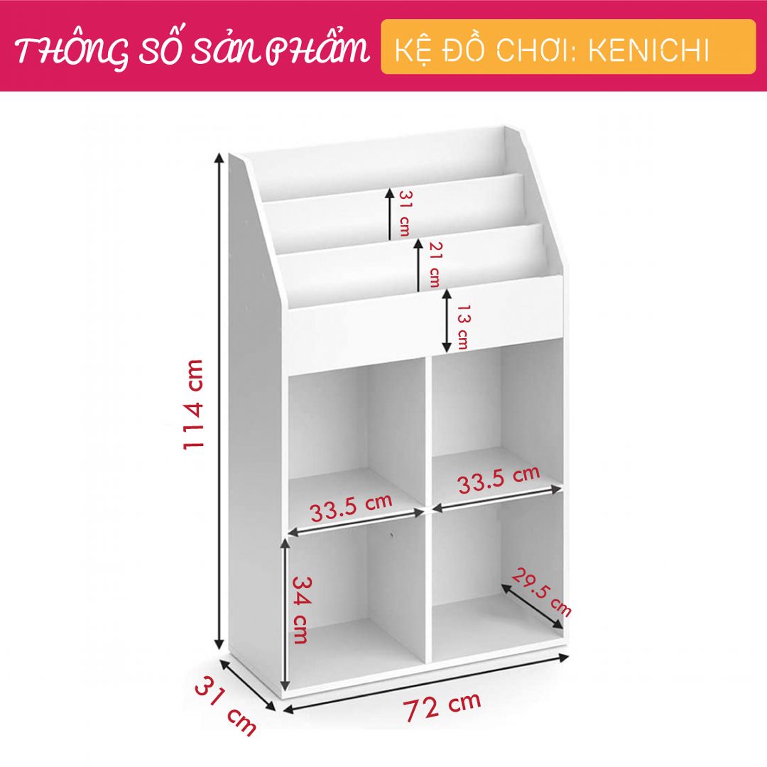 Kệ để đồ chơi cho bé SMLIFE Kenichi là giải pháp hoàn hảo cho những ai đang đau đầu về việc nhà diện tích nhỏ nhưng luôn tràn ngập với các món đồ chơi của con trẻ. Kệ đồ chơi SMLIFE được thiết kế đơn giản nhưng rất tinh tế giúp bạn tổ chức các món đồ chơi, sách vở của bé gọn gàng và nhanh chóng. Sản phẩm được thiết kế với độ cao vừa phải giúp các bé dễ dàng lấy và sắp xếp lại các món đồ chơi mà không phải leo trèo. Sản phẩm hiện đang được bán với mức giá vô cùng phải chăng, có tính cạnh tranh cao. ĐẶC ĐIỂM SẢN PHẨM: