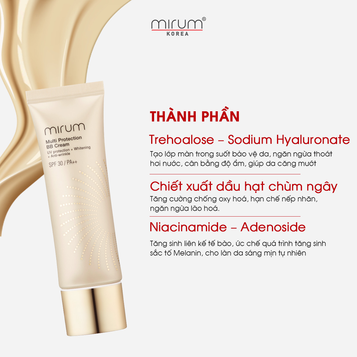 ✨Kem BB 6in1 Mirum làm trắng da, chống lão hoá, dưỡng ẩm, chống tia UV, Lót và nền 50g Mirum Multi Protection BB cream SPF30/PA++