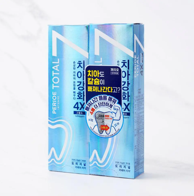 KEM ĐÁNH RĂNG PERIOE TOTAL7 INTENSE REPAIR vị nguyên bản bảo vệ men răng gấp 4 lần nhờ công thức độc quyền bổ sung canxi và phospho, lấp đầy khoảng trống ở răng bị hư hỏng, hạn chế tình trạng sâu răng và bị ố màu.