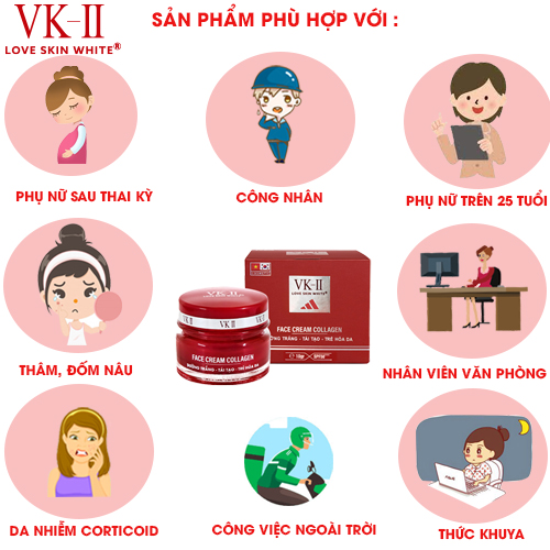 Kem dưỡng trắng, tái tạo và trẻ hóa da VK-II Love Skin White Face Cream Collagen 10g THÔNG TIN CHI TIẾT VỀ KEM DƯỠNG TRẮNG, TÁI TẠO VÀ TRẺ HÓA LÀN DA VK-II
