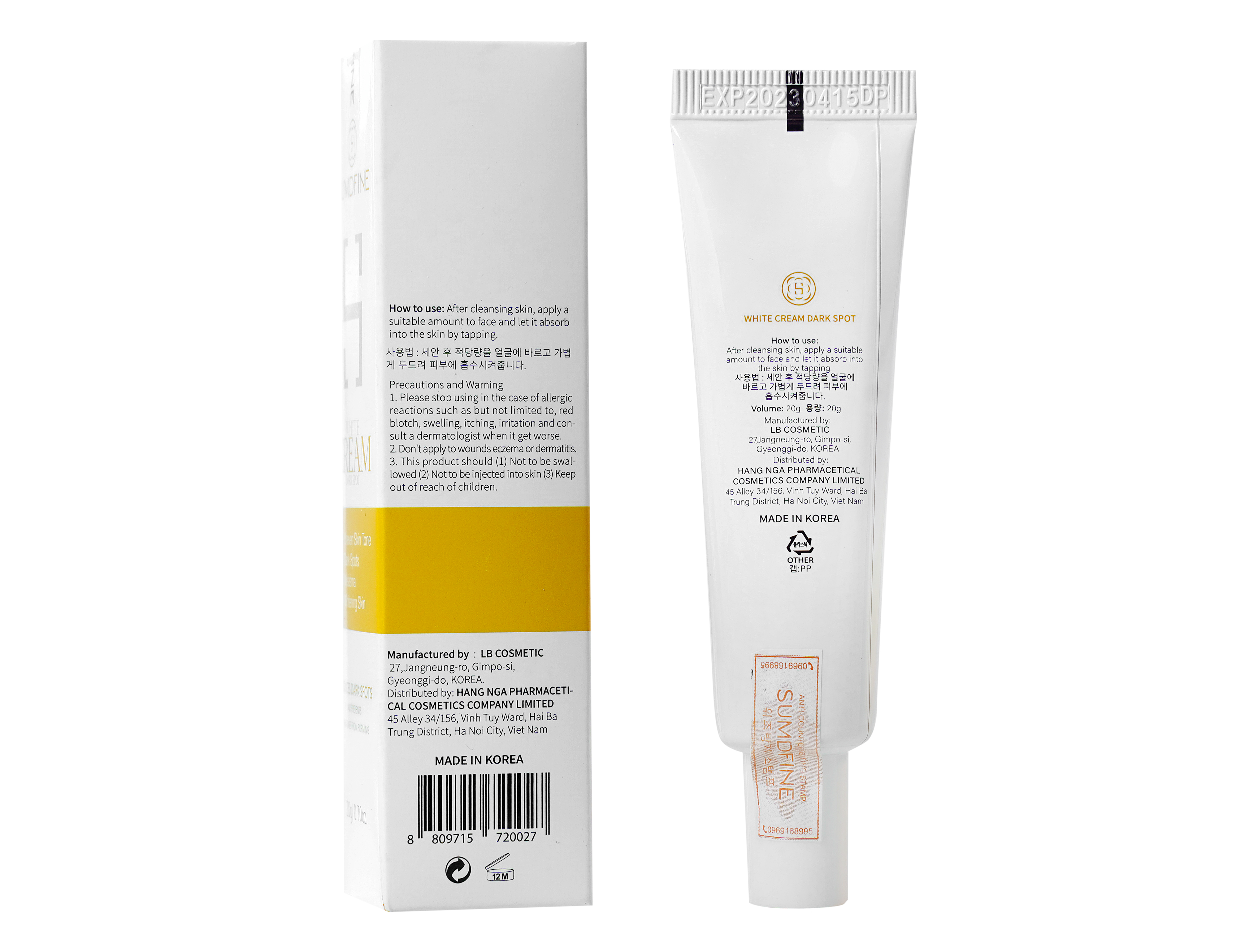 KEM TRỊ NÁM TRẮNG DA SUMDFINE WHITE CREAM DARK SPOT HÀN QUỐC Thành phần chính Arbutin giúp ức chế enzyme sản sinh ra sắc tố melanin trong tế bào da, ngăn ngừa, xóa mờ