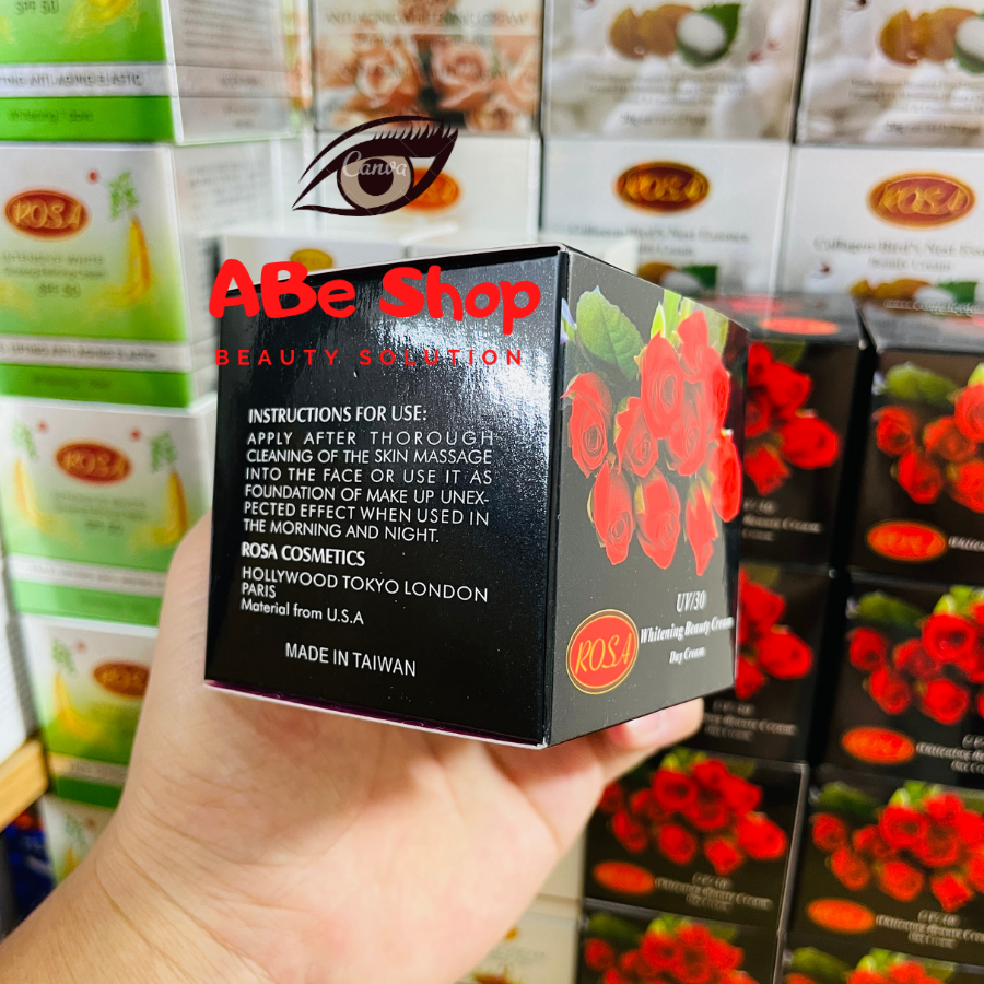 Kem dưỡng trắng hoa hồng đen ROSA chứa tinh chất đặc biệt có nguồn gốc từ Đông Phương và Tây Phương, tinh chất chiết xuất từ ngọc trai tự nhiên, có thành phần dưỡng da nhiều vitamin, có tính kháng k.huẩn và chống tia tử ngoại.