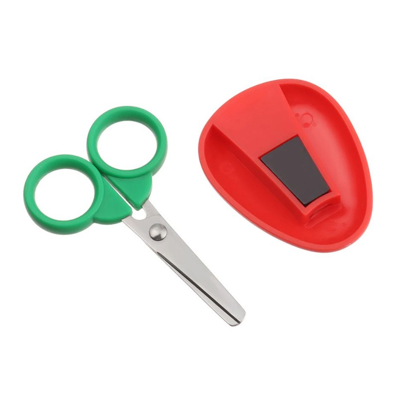 - Chất liệu: Lưỡi kéo bằng thép không gỉ, sắc bén ● Tai kéo/ tay cầm bằng nhựa ABS an toàn. Hộp kéo bằng nhựa ABS có gắn nam châm từ tính