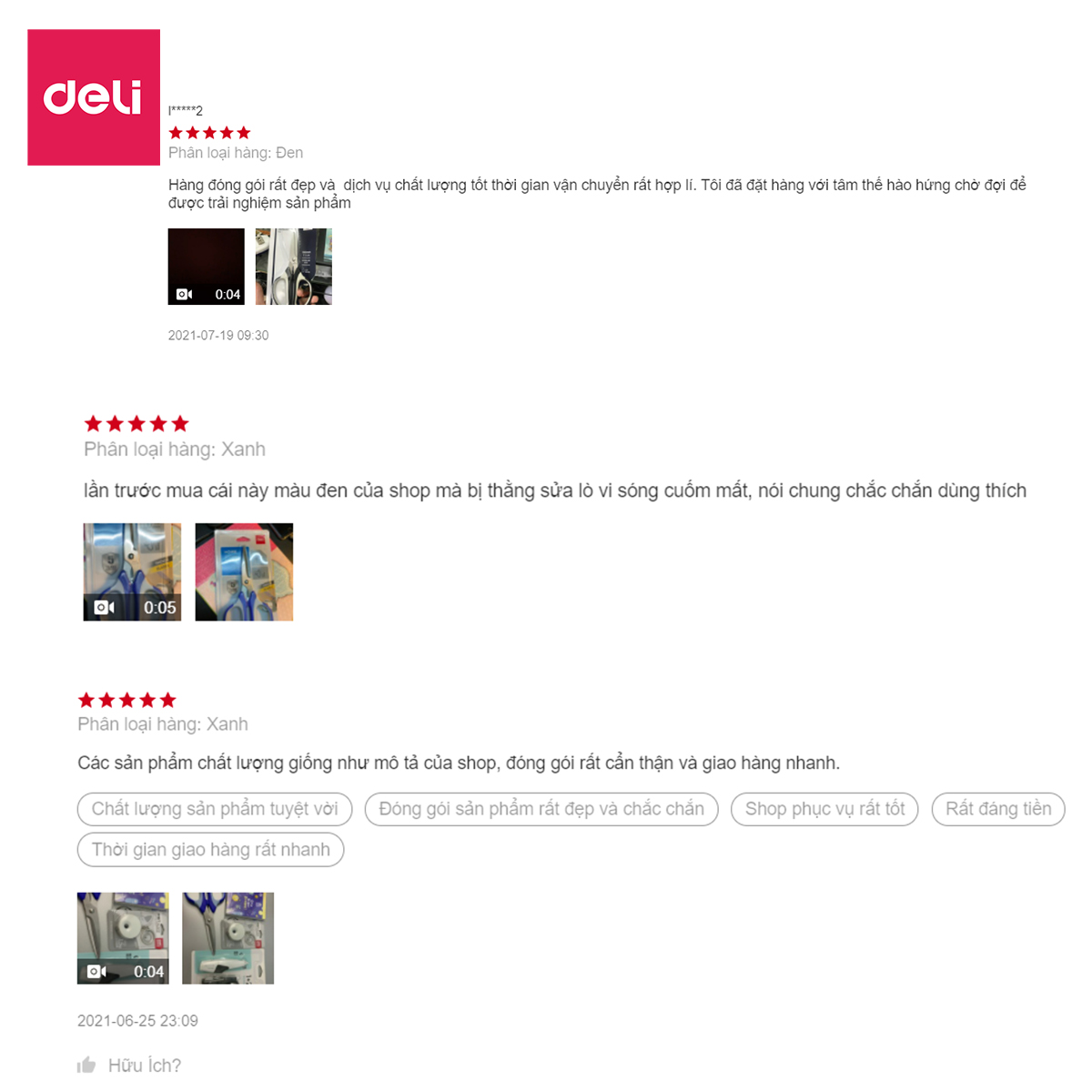 Tự hào là một trong những nhãn hàng văn phòng phẩm lớn nhất tại Việt Nam, @Delivietnam không ngừng nỗ lực và phát triển trong lĩnh vực phân phối các sản phẩm cho các đơn vị văn phòng, trường học,... Với phương châm sản xuất những sản phẩm chất lượng tốt nhất và luôn đặt khách hàng làm trọng tâm, sứ mệnh của Deli là làm hài hòng người tiêu dùng toàn cầu với những sản phẩm chất lượng cao, độ tin cậy tuyệt đối và thân thiện với người dùng. Khách hàng lựa chọn các sản phẩm của @Delivietnam sẽ được cam kết: Sản phẩm chính hãng từ nhà máy Deli, nguồn gốc rõ ràng và chất lượng đạt tiêu chuẩn. Bảo hành theo quy định của nhà sản xuất. Giá cả hợp lý, cạnh tranh, rẻ nhất thị trường. Hỗ trợ đổi trả hàng cho những sản phẩm bị thiếu.
