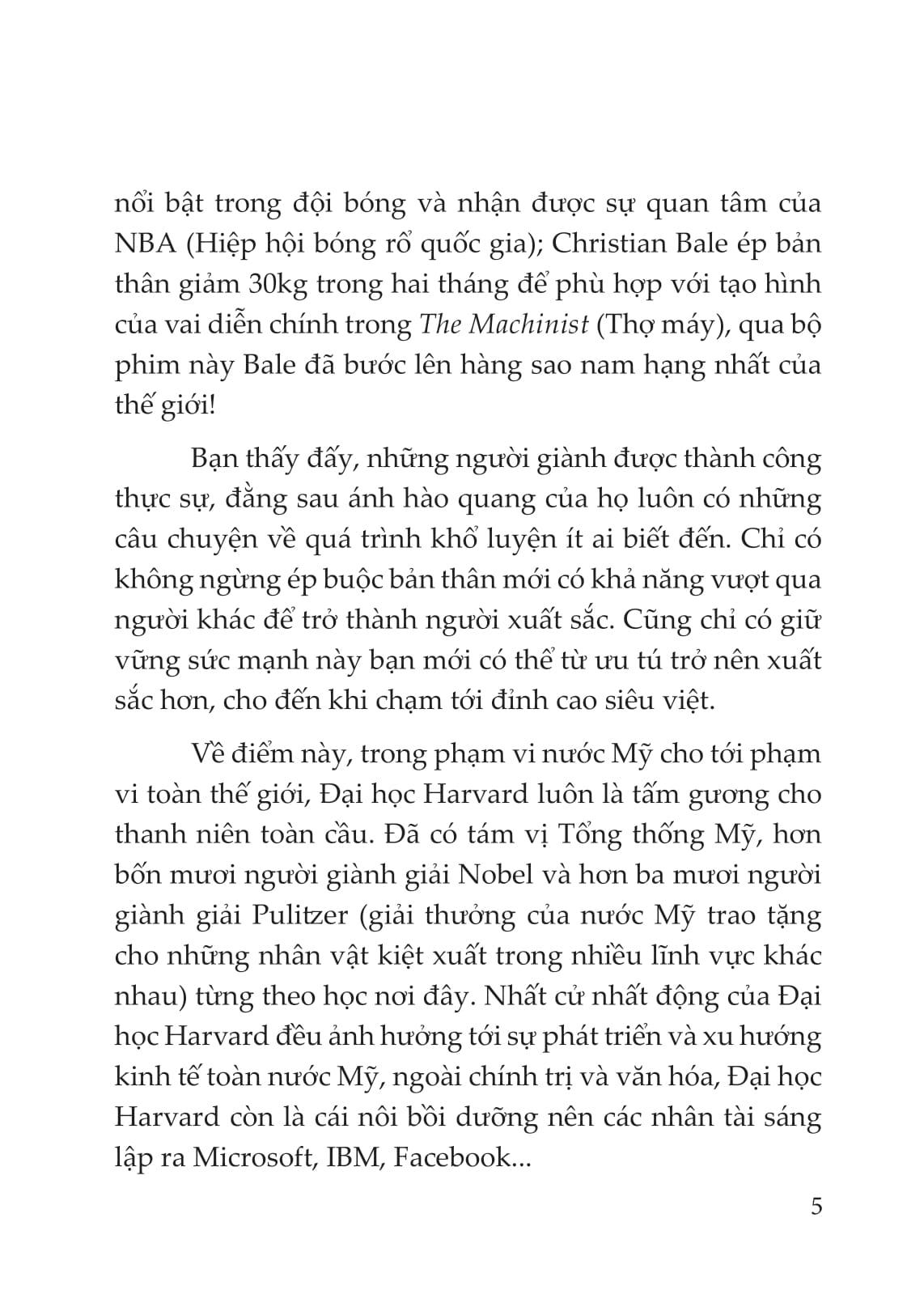 Bạn có biết làm thế nào để một đứa trẻ không biết bơi lại nhanh chóng học bơi được hay không? Rất đơn giản, chỉ cần trả trẻ xuống nước , để trẻ giãy giụa, làm quen với nước, rồi dần sẽ biết bơi”. Con người ta cũng vậy, chỉ bộc lộ rõ tiềm năng của mình khi gặp tình huống nguy hiểm, khi bị “ép” phải tiến lên. Do vậy, phá bỏ giới hạn của bản thân không khó, quan trọng là bạn có đủ bản lĩnh để dấn thân hay không, bạn có đủ quyết liệt để ép bản thân xuất sắc hơn người khác hay không?