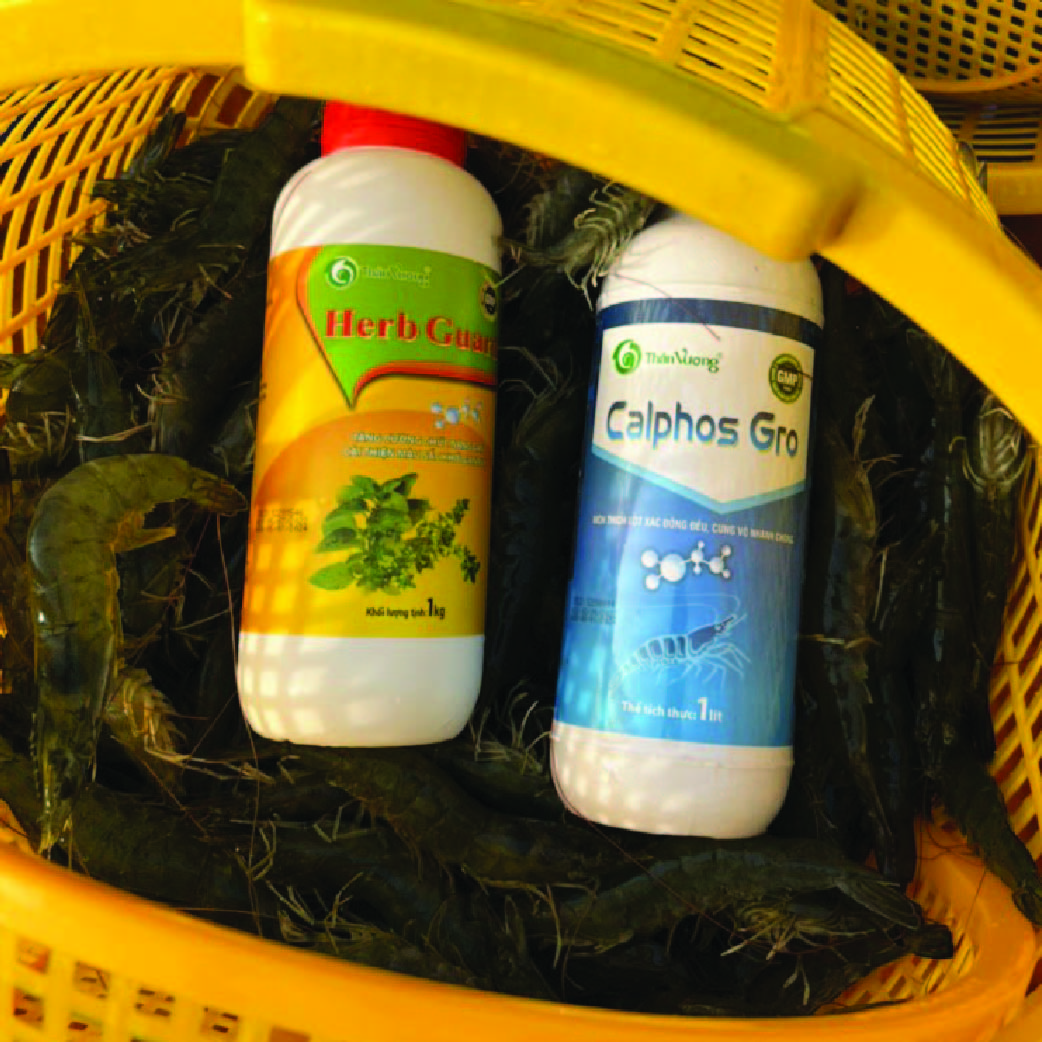 - Calphos Gro, khoáng dễ hấp thu, giúp tôm có cơ thịt chắc khỏe, vỏ sáng bóng.