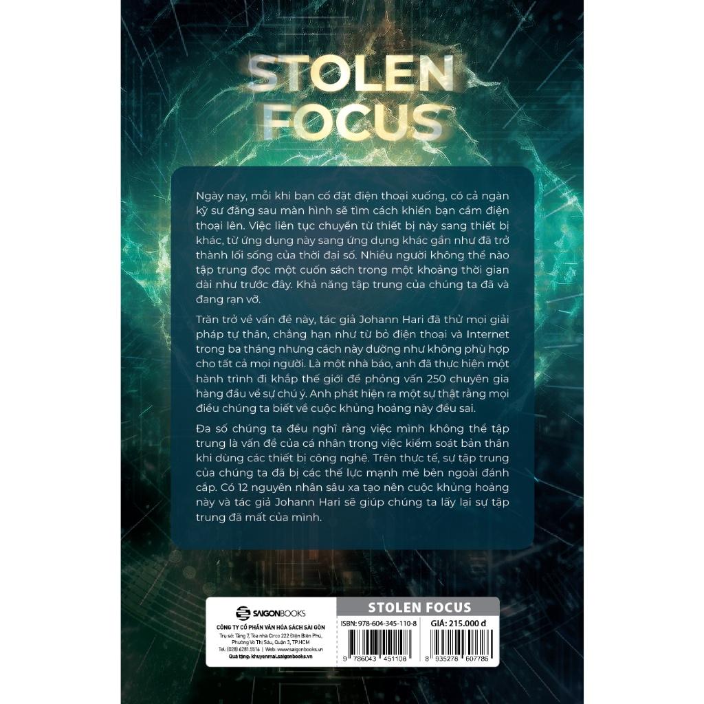 Xuyên suốt cuốn sách Stolen Focus: Why You Can’t Pay Attention - and How to Think Deeply Again này, bạn sẽ học cách thực hiện giảm thiểu những vấn đề về khả năng tập trung, tác giả đã gom góp hơn 250 công trình nghiên cứu khoa học về sự tập trung khi viết ra quyển sách này.