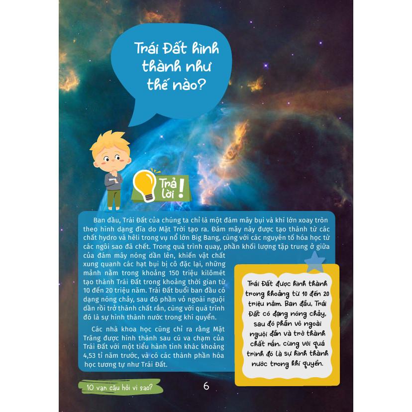 Tuổi thơ là khoảng thời gian đẹp nhất trong cuộc đời mỗi con người. Ở lứa tuổi này, trẻ luôn tràn trề hy vọng, cùng những ngây thơ trong sáng buổi ban đầu. Đứng trước thế giới với bao điều kỳ diệu mang trong mình sự tò mò, khát vọng tìm hiểu, câu nói thường thấy nhất ở trẻ là "Vì sao?" Để có thể trả lời chính xác câu hỏi của trẻ, không phải là việc đơn giản. Các nghiên cứu cho thấy, sự phát triển ở bộ não trẻ diễn ra nhanh nhất trong 13 năm đầu đời. Là một phụ huynh, khi không mang lại cho trẻ cơ hội suy nghĩ, tìm hiểu, có thể bạn sẽ phải hối tiếc! Thế giới ngày nay phát triển nhanh chóng, kho tàng kiến thức là vô hạn, luôn được đổi mới với tốc độ chóng mặt. Cũng xuất phát từ những suy nghĩ trên, chúng tôi đã thu thập rộng rãi, lựa chọn kĩ càng các câu hỏi mà các em nhỏ cảm thấy hứng thú để đưa ra bộ sách Mười vạn câu hỏi vì sao?, mang lại cho các em những câu trả lời theo từng chủ đề. Cuốn sách, với sự đóng góp của các chuyên gia khoa học thường thức giàu kinh nghiệm, sử dụng ngôn ngữ dễ hiểu, kết hợp những hình ảnh minh họa sinh động sẽ mang đến cho các em những kiến thức cơ bản, chứa đựng nội dung phong phú, xoay quanh nhiều chủ đề hấp dẫn: