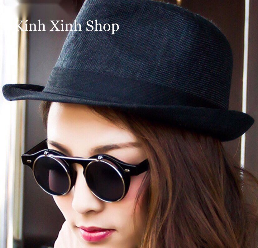 ✨Kính Râm 2 Lớp Mở Nắp Mắt Tròn Gọng Nhựa Chống Nắng Uv Cao Cấp