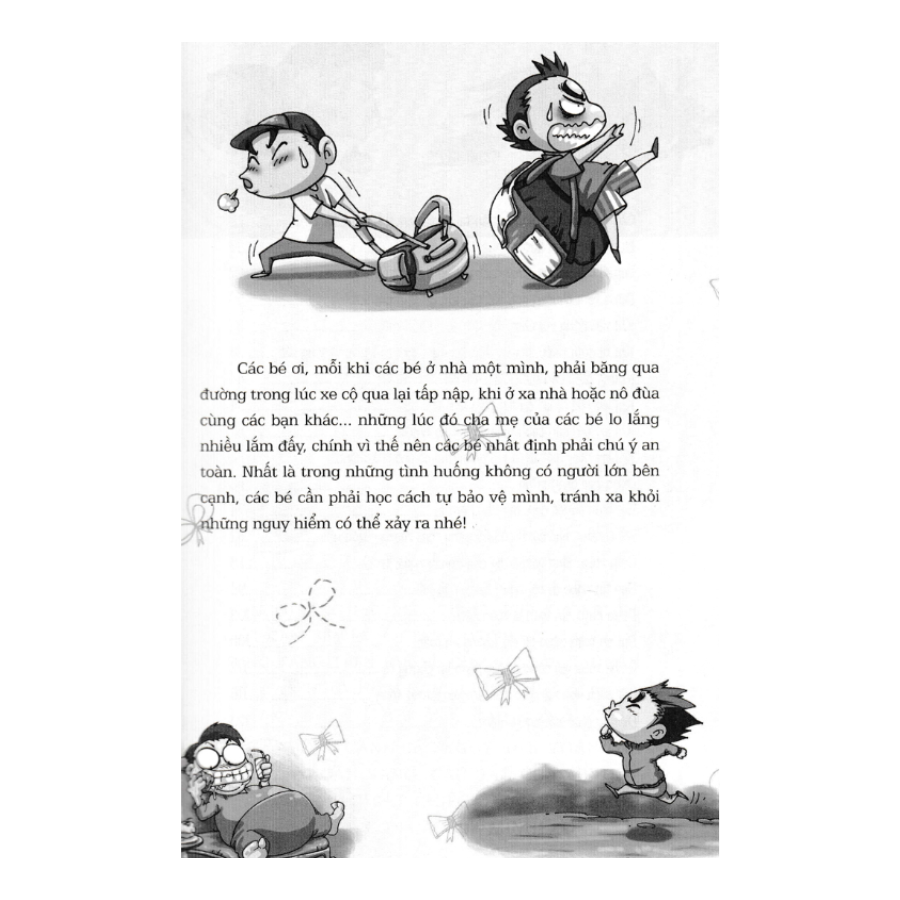 Bộ sách Kỹ năng sinh tồn dành cho trẻ trọn bộ 4 cuốn đề cập đến tất cả những mối nguy hiểm tiềm ẩn có thể ảnh hưởng đến sự an toàn của trẻ nhỏ trong mọi khía cạnh của đời sống xã hội hiện đại ngày nay. Với rất nhiều những tình huống bất ngờ, khẩn cấp và nguy hiểm được miêu tả dưới hình thức tranh minh họa với 3 chủ đề xuyên suốt: