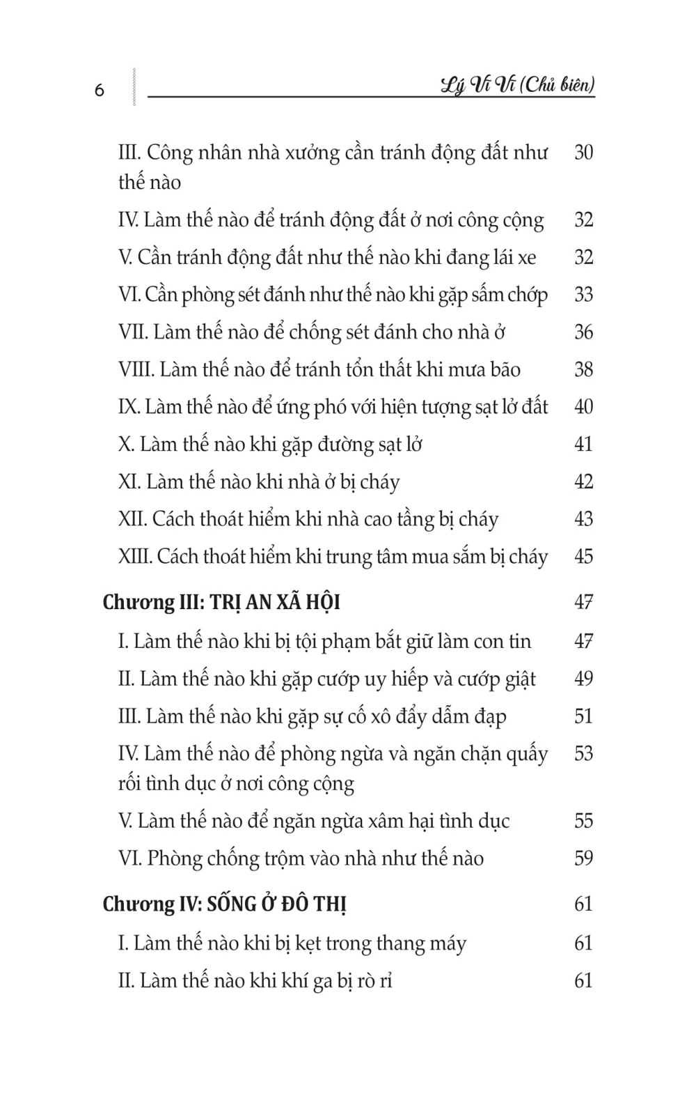 Kỹ năng xử lý tình huống khẩn cấp đưa ra những dấu hiệu, những điều cần chú ý khi gặp sự cố, những tình huống bất ngờ xảy đến khi trên các phương tiện giao thông, thiên tai, tội phạm, cháy nổ, trong cuộc sống thường ngày – kẹt trong thang máy, rò rỉ ga, ứng phó với mưa giông, cấp cứu ngộ độc, chấn thương…cũng như cách ứng phó, phòng và xử lý, cấp cứu các tình huống xảy ra.