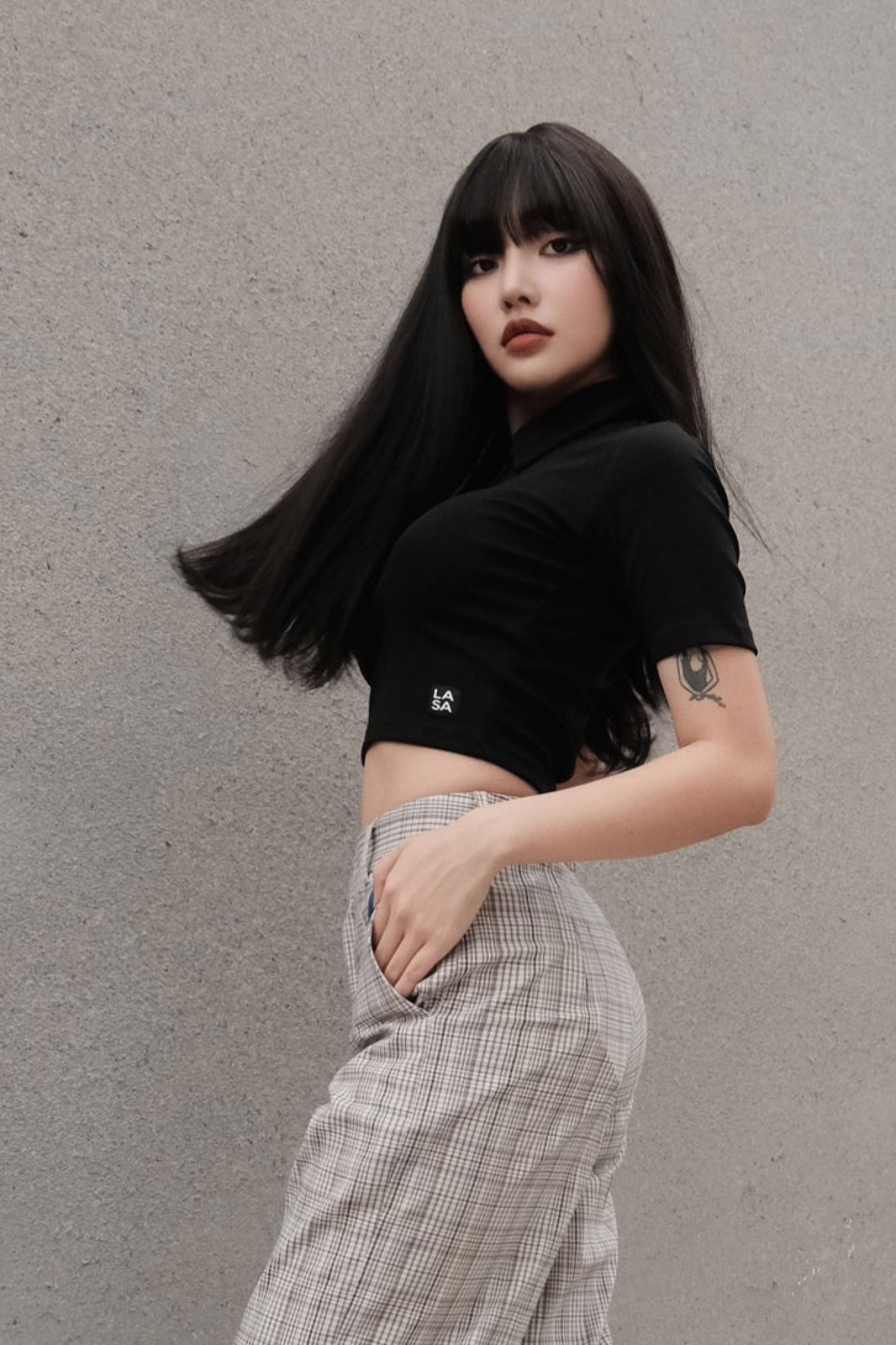 BORIP COTTON 100% 4 CHIỀU, CHẤT DÀY MỀM, THOÁNG MÁT ÁO MÀU ĐEN, CỔ POLO DÂY KÉO SẮT YKK FORM ÔM, TAY NGẮN, CROPTOP ĐIỂM NHẤN TAG LOGO LAAS TRÊN LAI ÁO