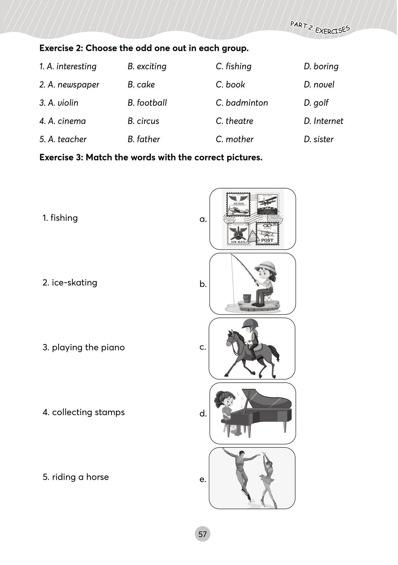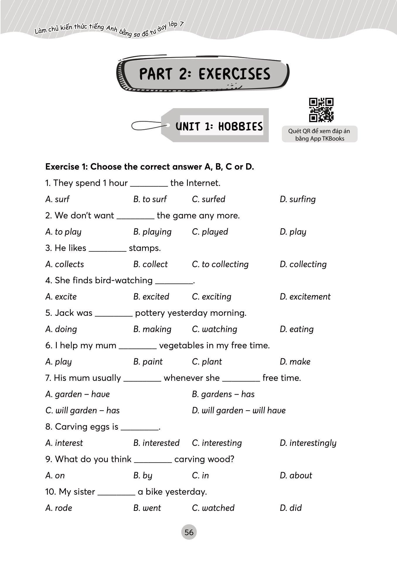 Phần 2 sẽ là hệ thống các bài tập tự luyện theo 12 đơn vị bài học trong sách giáo khoa tiếng Anh Global Success. Các em học sinh sẽ được luyện tập kiến thức đã học thông qua các dạng bài tập khác nhau nhằm củng cố kiến thức, rèn các kĩ năng trong tiếng Anh và nâng cao trình độ tiếng Anh của mình