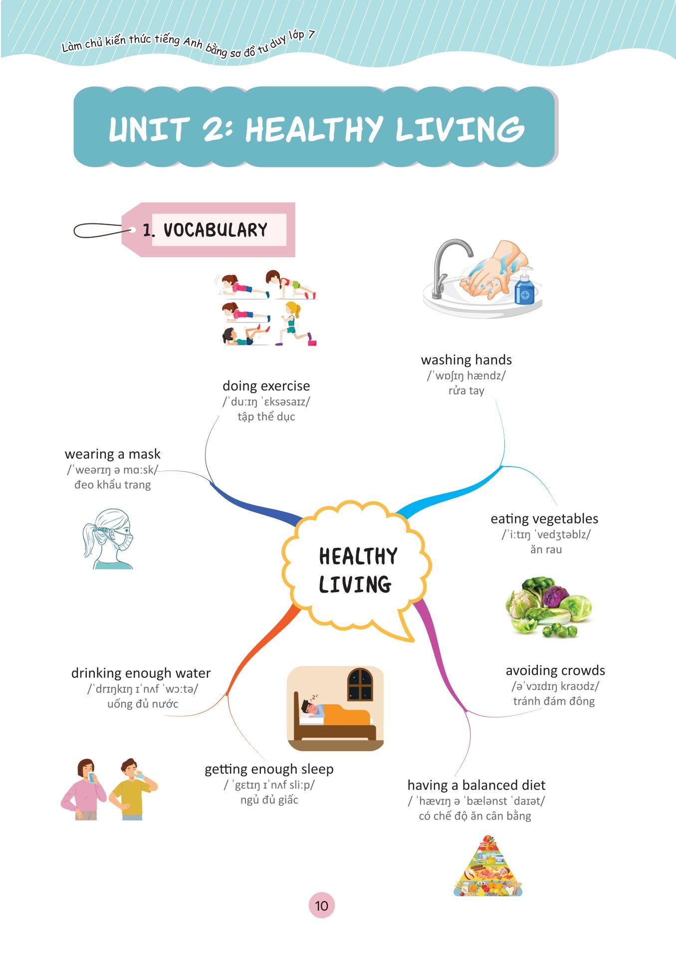 Phần 1 của cuốn sách sẽ tổng hợp lại toàn bộ kiến thức trọng tâm về từ vựng, ngữ pháp trong từng bài học dưới dạng Sơ đồ tư duy – công cụ ghi nhớ vạn năng của não bộ – giúp học sinh có thể ghi nhớ một cách dễ dàng, nhanh chóng và hiệu quả.