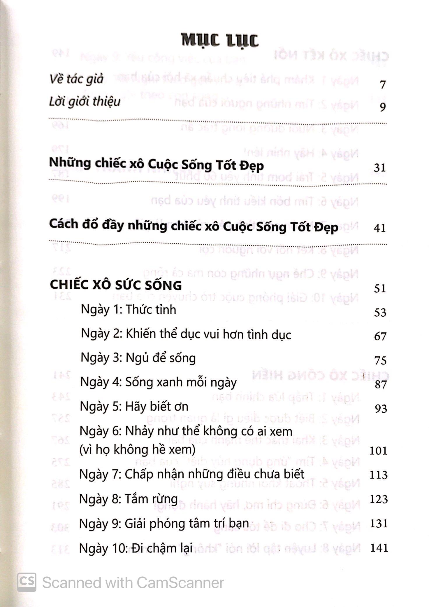 Hãy nghĩ về cuộc đời của bạn như ba chiếc xô. Chiếc xô đầu tiên được gọi là Sức Sống, nói đến trạng thái tâm trí và cơ thể bạn. Chiếc xô thứ hai là Kết Nối, nói đến những mối quan hệ. Chiếc xô thứ ba là Cống Hiến, nói đến cách bạn cống hiến cho thế giới này. Những chiếc xô này càng đầy thì cuộc sống của bạn càng trở nên tốt đẹp hơn. Khi tất cả đều gần như sắp trào ra cùng một lúc, cuộc sống sẽ thăng hoa. Đó là điều mà chúng ta hướng đến.