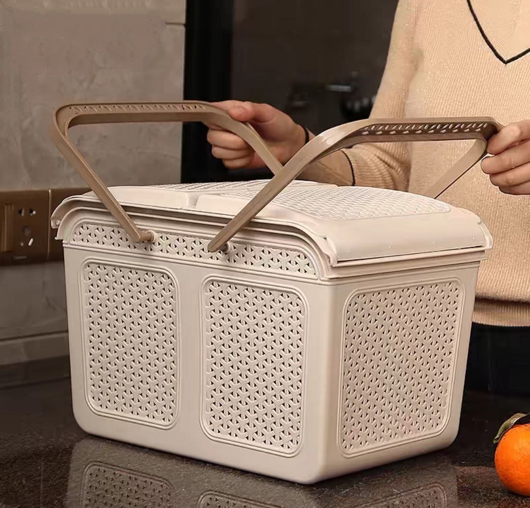 GIỎ ĐỰNG ĐỒ ĐI SINH CHO MẸ Chiếc giỏ nhỏ gọn, có quai sách tiện lợi có thể để ngay trên giường để mẹ có thể lấy đồ thay cho bé một cách dễ dàng. Được làm từ nhựa PP an toàn cho bé. Có 2 nắp đóng, mở khi lấy và cất quần áo. Thiết kế rộng rãi để gấp gọn quần áo của bé gọn gàng không bị nhăn nhúm. Màu sắc: hồng, xanh, kem Kích thước: Mã sản phẩm: 2604 Kích thước: D38xR27xC26.5 (cm)