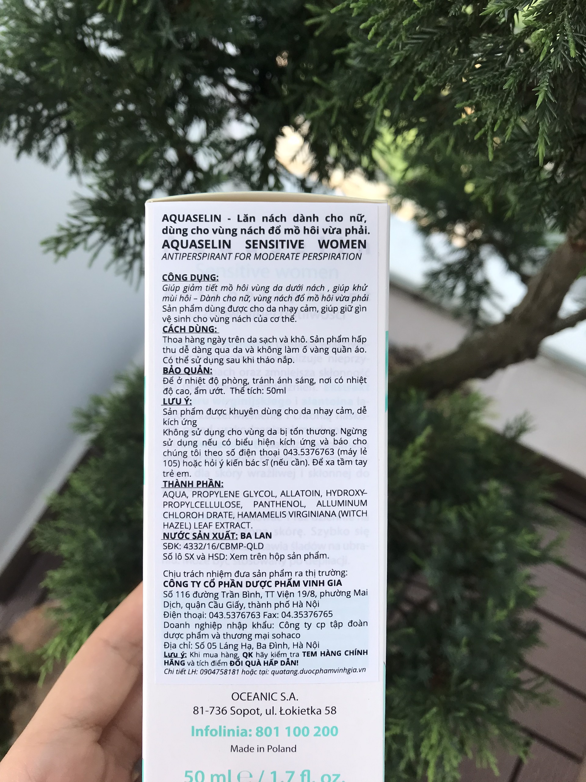 Lăn Nách Dành Cho Nữ Aquaselin Sensitive Women Antiperspirant For Moderate Perspiration 50ml - 3934 giúp ngăn ra mồ hôi và giảm mùi khó chịu, giúp vùng nách luôn khô thoáng và ngăn ngừa hôi