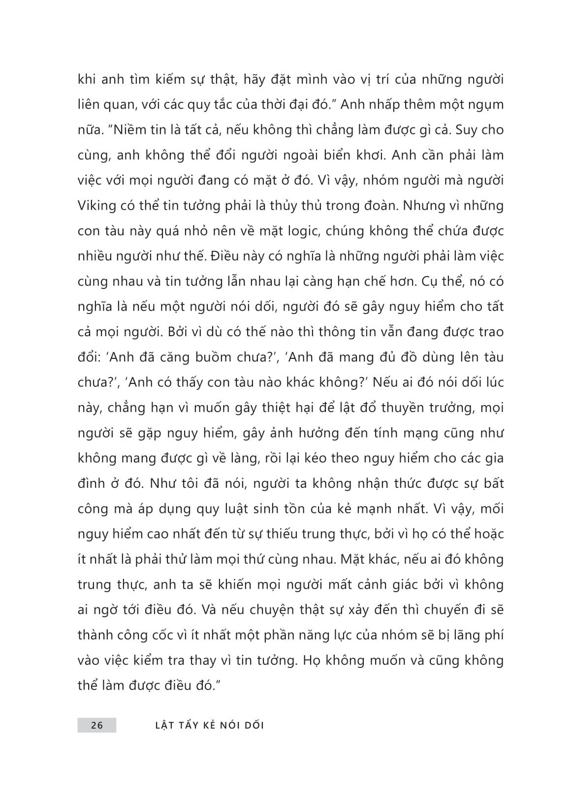 Dù bảo vệ sự thật không dễ dàng chút nào vì nói dối thuận tiện, dễ làm mẫu và mang lại lợi ích tức thời cho người nói, thì bạn vẫn nên hiểu rằng sự dối trá sẽ không giúp bạn đi xa. Cứ lạm dụng những lời nói dối vì ít để lại hậu quả thì về sau, dù bạn có nói thật cũng chẳng mấy ai tin. Đó là lý do chúng ta nên lựa chọn đứng về phía sự thật, LẬT TẨY KẺ NÓI DỐI, nhìn-thấu-điều-kẻ-khác-đang-che-giấu để biến môi trường xung quanh thành một nơi an toàn mà chúng ta được là chính m.ình.
