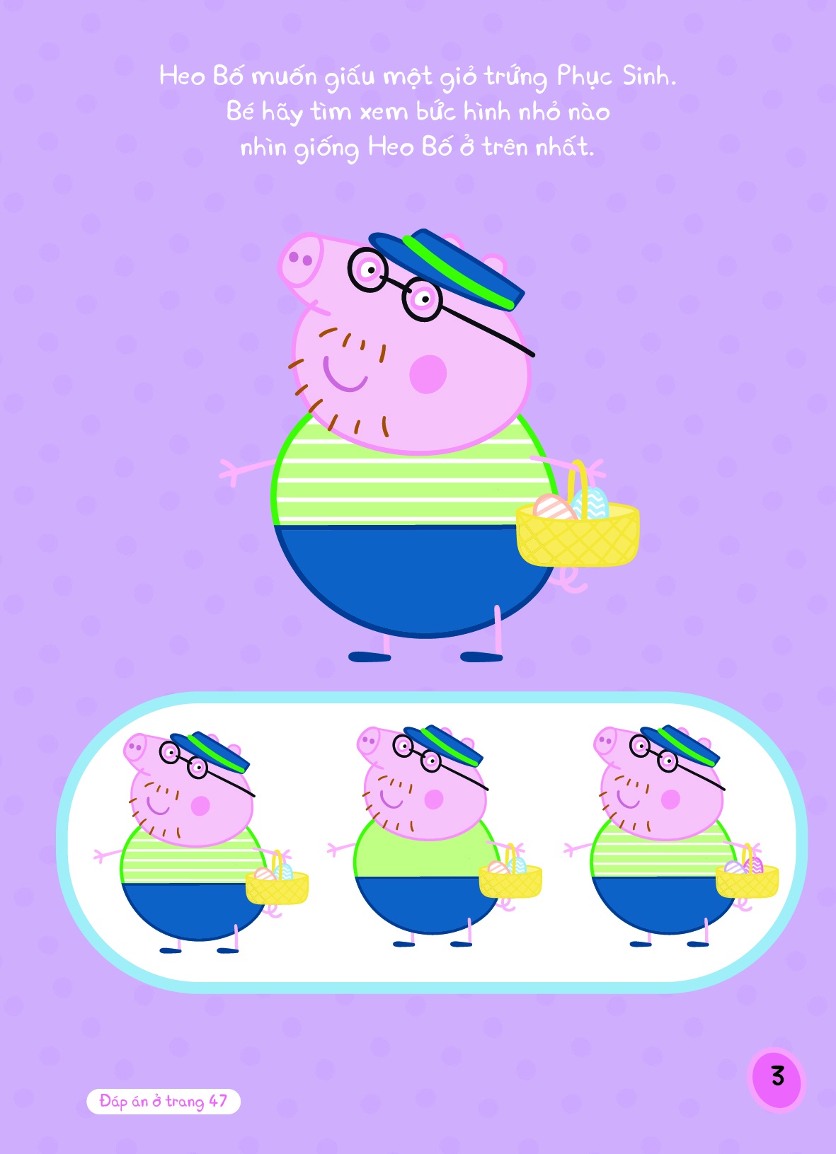 Heo Peppa rất thích lễ Phục Sinh! Bé hãy cùng Peppa và những người bạn đáng yêu của cô bé tham gia vào các hoạt động vui nhộn như đi tìm trứng, trang trí bánh ngọt… sau đó dùng đôi bàn tay khéo léo của mình để viết thiệp và làm những chiếc giỏ đựng trứng Phục Sinh đáng yêu.