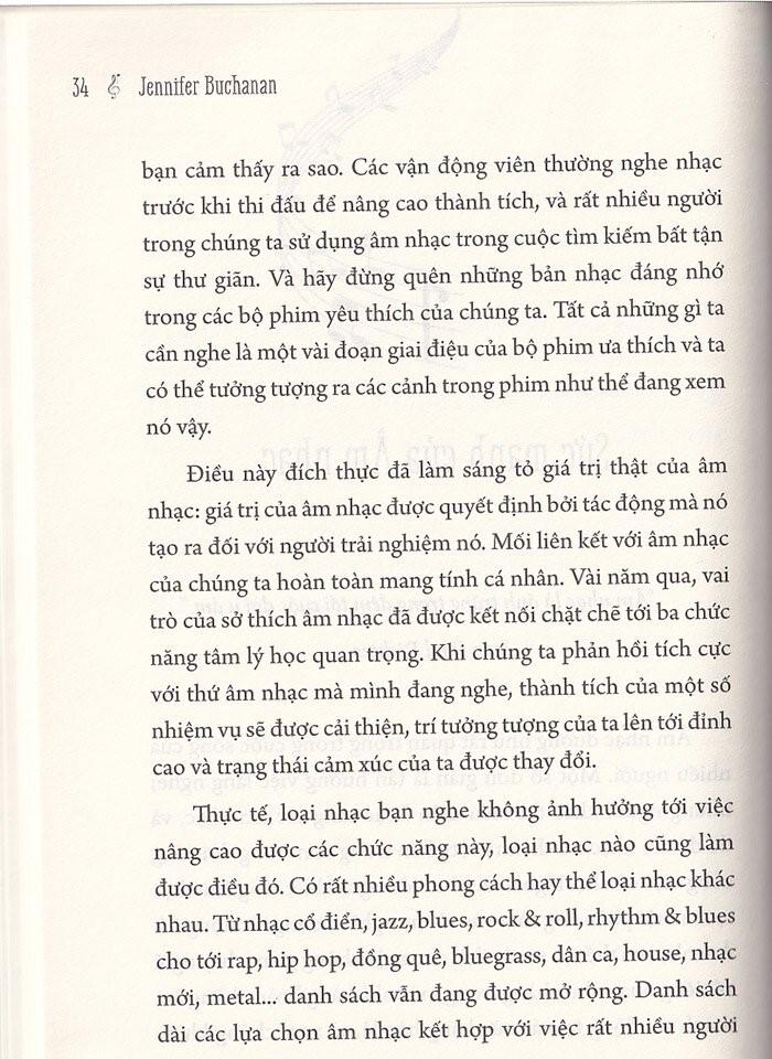 Một cách bản năng, chúng ta đều biết âm nhạc có sức ảnh hưởng rất lớn, ở nó có gì đó thật kỳ diệu. Khi nghe bài hát đúng tâm trạng, bạn sẽ khóc hoặc cười, gõ nhịp chân hoặc chỉ thở ra mãn nguyện “à”. Âm nhạc kết nối tới thứ gì đó sâu thẳm trong chúng ta, thứ gì đó liên quan đến khả năng sáng tạo ra mọi điều ta khao khát. Tôi đang không chỉ nói về hội họa, âm nhạc hay văn chương, mà mọi sự sáng tạo của cuộc sống – làm ra một chiếc bánh hoặc dọn sạch một khu vực trong nhà bạn, hay thậm chí chỉ là tạo ra một cảm xúc, tốt hoặc xấu. Âm nhạc mang đến cho chúng ta một đường dẫn trực tiếp tới sức mạnh đó và giúp nó nở rộ theo cách gần như không thể lý giải được. Tôi đã nghe nói về thuật ngữ “liệu pháp âm nhạc” cách đây ít lâu, nhưng chưa bao giờ thực sự chú ý, thành thật mà nói, thậm chí còn gạt nó đi vì từ “liệu pháp” (làm thế nào một thứ tuyệt vời như âm nhạc lại bị quy thành liệu pháp – như phân tâm học hay gì đó). Sau đấy, tôi đã gặp Jennifer Buchanan. Cô là một chuyên gia trị liệu âm nhạc được đào tạo, nhưng có điều gì đó ở Jennifer khiến tôi ngay lập tức nghiêm túc chú ý. Trước cô, chưa từng có ai nói với tôi những điều như vậy về âm nhạc. Gần với những điều “không thể lý giải nổi” mà tôi luôn biết có tồn tại trong âm nhạc nhưng chưa bao giờ thật sự nắm bắt được. Rõ ràng là Jennifer ấp ủ một cuốn sách và nóng lòng được xuất bản nó. Tôi chưa đọc cuốn sách nào về “liệu pháp âm nhạc”, nhưng tôi có thể nói rằng cô ấy đang cố gắng mang đến thứ gì đó chưa từng được trình bày đầy đủ trên giấy. Tôi nói với cô ấy rằng khoa học về âm nhạc không phải là điều khiến chủ đề này hấp dẫn tôi. Khi cô ấy bắt đầu kể cho tôi nghe các câu chuyện của mình, tôi biết rằng những câu chuyện đó đã hàm chứa câu trả lời: đó là những gì âm nhạc có thể làm với một người đang cần được cổ vũ, giảm căng thẳng, hay thậm chí đang tìm cách kết nối trở lại với thế giới. Bốn năm đã trôi qua kể từ lần đầu tiên tôi gặp Jennifer và hai năm kể từ khi chúng tôi xuất bản ấn phẩm đầu tiên của cuốn sách này. Sau khi đọc một số bản nháp sơ bộ, tôi đã gợi ý cho cô về cách làm nổi bật thông điệp. Sau khi đọc cuốn sách của cô, tôi đã suy nghĩ rất nhiều về âm nhạc và việc không hiểu sao cuộc sống của tôi lại thiếu đi âm nhạc nhiều đến thế. Tôi yêu âm nhạc, tôi lớn lên với việc chơi piano.  Tôi có thể chọn bất kỳ nhạc cụ nào, trừ đàn guitar vì một vài lý do, và học chơi khá nhanh. Nhưng vài năm trước, tôi không còn nghe nhạc thường xuyên nữa. Tôi không còn bật radio trong xe hơi vì thích sự im lặng. Là một tác giả, đôi khi tôi tập trung hoàn toàn vào những suy nghĩ của mình. Tôi nói về việc “nghe” một cuốn sách trong đầu trước khi viết nó ra, vì vậy có thể nói rằng tôi “viết” liên tục, bất kể tôi đang làm  gì khác. Nhưng kể từ khi đọc bản nháp đầu tiên của cuốn sách này, tôi đã có chút áy náy với ý nghĩ mình không còn nghe nhạc nhiều như trước nữa, và chắc chắn tôi đã không nghe bất cứ thứ gì có thể chắp cánh cho mình. Tôi có một cô con gái đang học tiểu học nên chúng tôi thường xuyên nghe nhạc pop, nhưng các thể loại khác thì không nhiều lắm. Rồi một buổi sáng Chủ nhật, tôi từ cửa hàng tạp hóa trở về nhà. Người cha yêu dấu của tôi vừa qua đời khoảng ba tuần trước đó; tôi ngập ngụa trong công việc, và không hề vui vẻ – tôi chỉ làm việc nhà, đảm bảo gia đình mình được chăm sóc đầy đủ. Khi bước vào cửa, tôi nghe thấy chất giọng tuyệt vời của James Taylor đang hát “Sweet Baby James”. Chúng tôi có một cái máy nghe nhạc nhỏ trong bếp, không phải là đồ xịn gì và chồng tôi đã bật đĩa Những bài hát hay nhất của James Taylor mà anh tìm được tại một cửa hàng từ thiện ngày hôm trước. Khi nghe những giai điệu của bài hát đó, tôi đã suýt khóc. Đó là thứ hay nhất mà tôi được nghe trong suốt một thời gian dài. Vì bất cứ lý do gì, buổi sáng hôm đó, giai điệu ấy chính là âm nhạc “của tôi”, và thông điệp từ cuốn sách của Jennifer bừng lên trong tôi. Khi tôi cần một thứ gì đó êm dịu dễ chịu, thì nó đây: James Taylor đang hát cho tâm hồn tôi. Ngay lập tức tôi cảm thấy thư giãn hơn. Tôi bỏ túi đồ tạp hóa trên tay xuống và bắt chồng khiêu vũ với mình ngay giữa bếp. Sau suốt một thời gian dài tôi mới cảm thấy kết nối với cuộc sống nhiều đến thế. Đó là một kỷ niệm tôi sẽ trân trọng. “Ứng dụng âm nhạc để thay đổi cuộc sống” là cuốn sách về việc sử dụng âm nhạc có chủ đích. Bạn sẽ thấy rõ điều này hơn trong các trang tiếp theo, nhưng tôi chắc chắn, theo bản năng, bạn vốn đã biết điều đó nghĩa là gì rồi. Đó là việc tìm kiếm âm nhạc phù hợp cho bất kỳ tình huống nào: khi bạn
