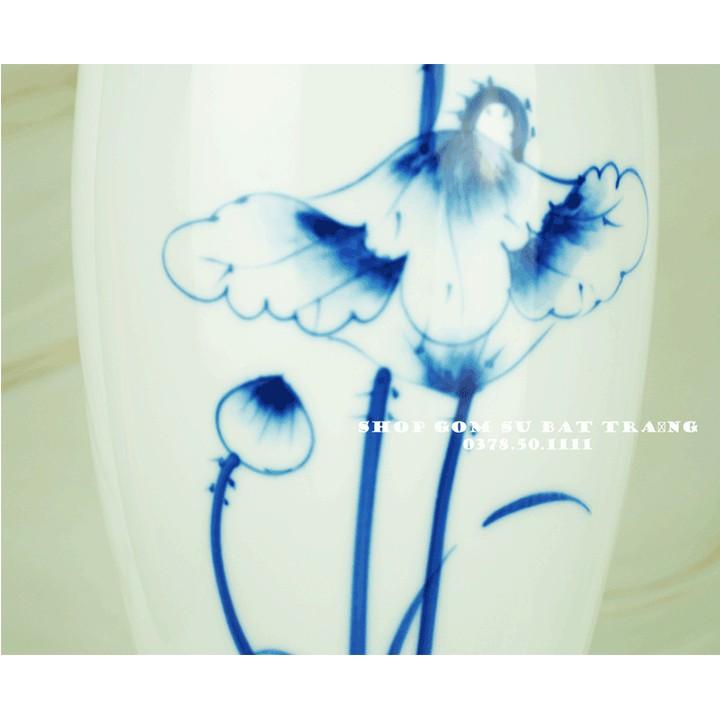 ✨Lọ hoa đẹp Bát Tràng men trắng hoa sen cao 27cm dáng bom