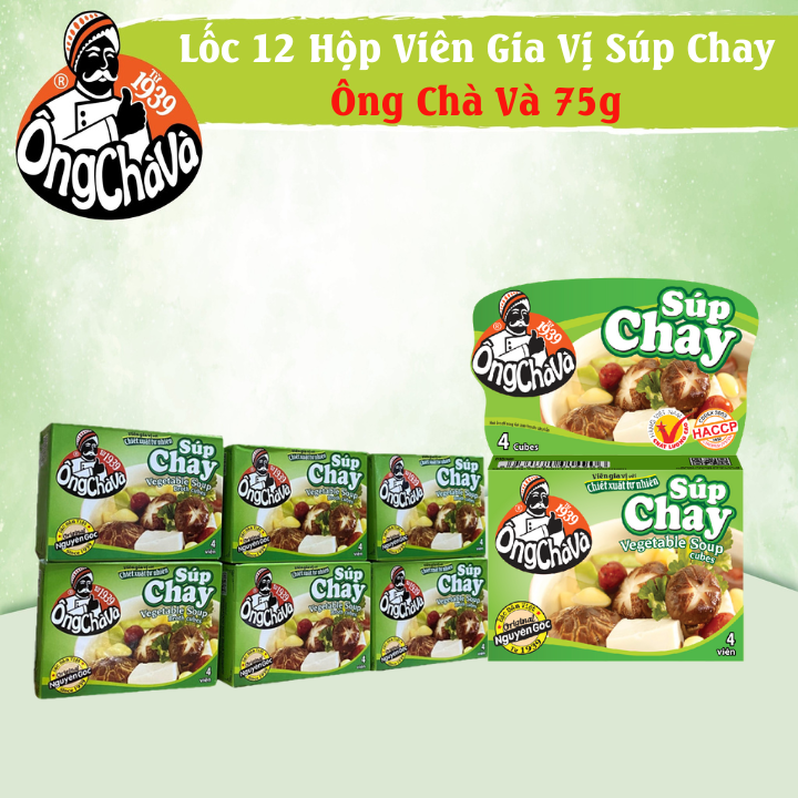 - Số lượng: 12 hộp viên gia vị Súp Chay 75g (1 lốc nguyên)
