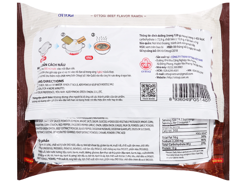 Công Ty TNHH HA FOOD hân hạnh là đối tác phân phối chính thức của OTTOGI Viet Nam, chuyên phân phối các thực phẩm Hàn Quốc chất lượng cao của OTTOGIThành phần: Mì: Bột lúa