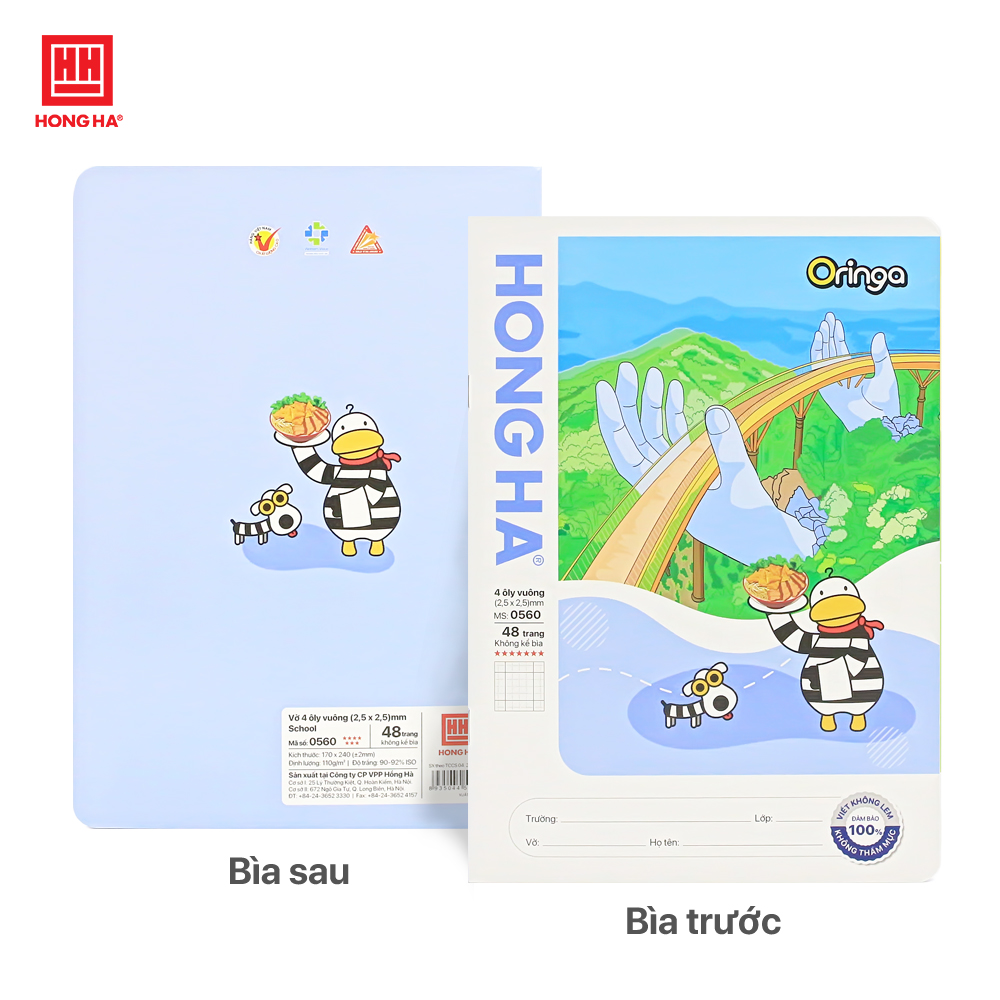 Vở 4 ô ly 48 trang School Animal Hồng Hà 0560 phù hợp cho học sinh tiểu học, tập viết chữ.