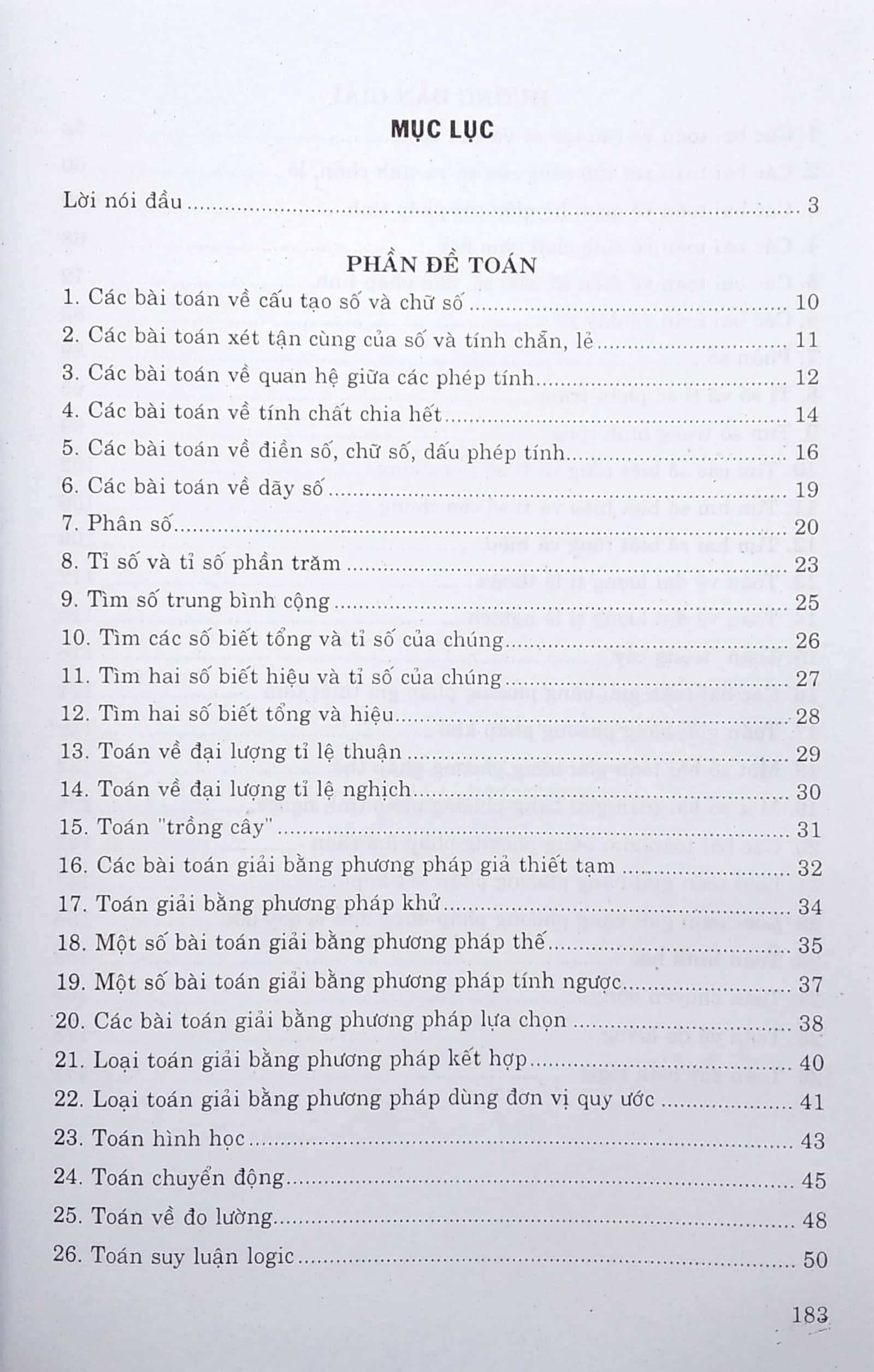 Sách này gồm 26 tiết đề cập đến 26 loại toán khác nhau. Đối với mỗi bài toán, bạn nên đọc thật kĩ đề, tìm hiểu cặn kẽ những đặc điểm của bài toán rồi tự mình suy nghĩ, cố hắng tìm ra lời giải, cố gắng tìm được nhiều cách giải và lựa chọn trong đó cách giải nào hay nhất. Sau đó mới tìm xem lời giải của bài toán mà sách đã nêu. Đa số các bài toán ở sách này đều là toán khó, trong đó có nhiều bài được rút ra từ các kì thi học sinh giỏi toán bậc tiểu học toàn quốc và các tỉnh, thành phố trong cả nước.