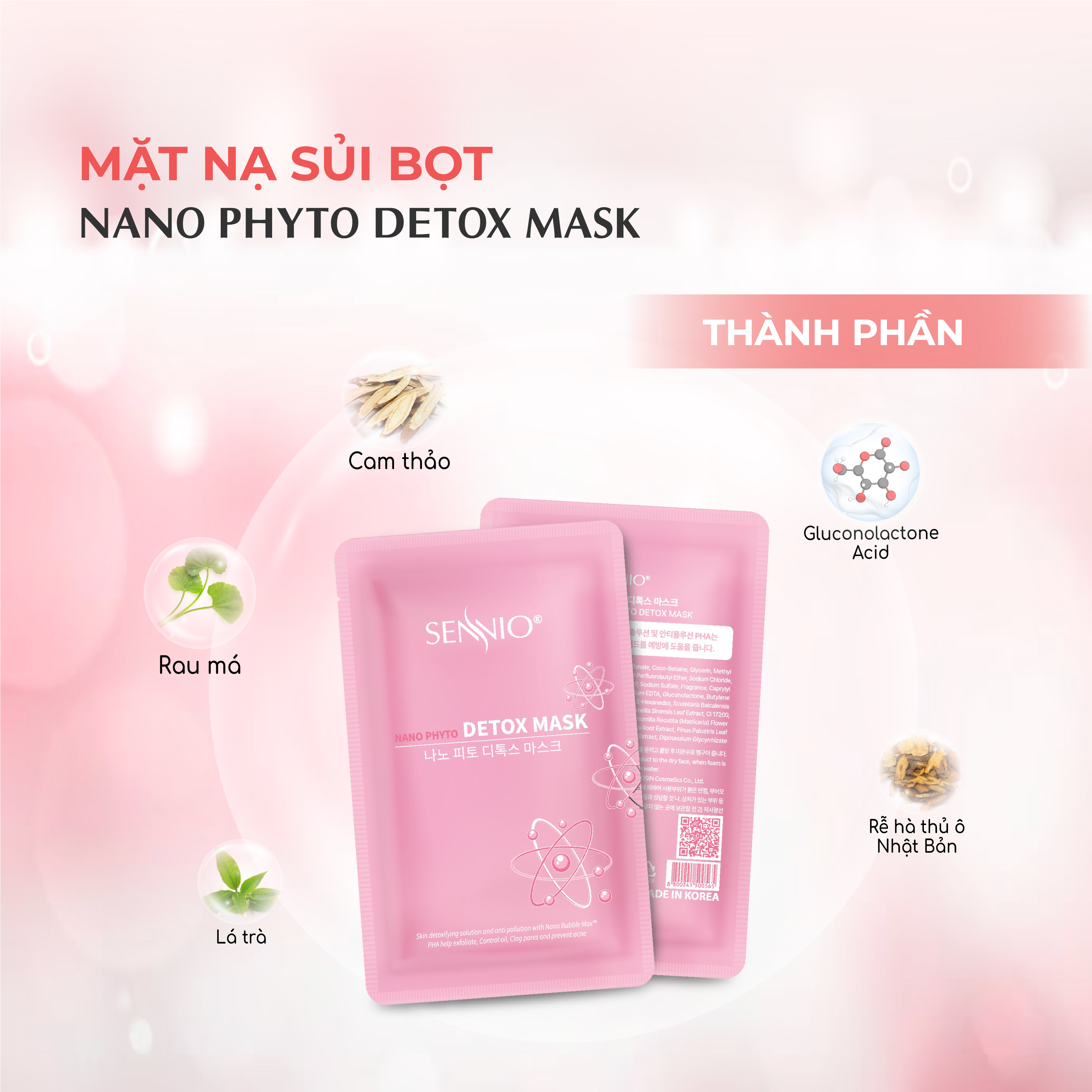 THÔNG TIN SẢN PHẨM Mặt nạ sủi bọt thải độc dưỡng trắng da Sennio SNO 808-1