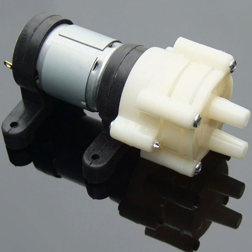 Máy bơm mini áp lực 12V 12W 2L kèm nguồn điện là dòng máy bơm mini nhỏ với công xuất tiêu thụ 12w và lưu lượng 2 lít/phút có khả năng tự hút. Được dùng bơm thực phẩm, bơm làm mát máy khoan, bơm định lượng, bơm nước hồ cá, bơm tưới và bơm chất lỏng khác. THÔNG SỐ KỸ THUẬT Điện áp: 9V ~ 12V DC Công xuất: 12 W Áp lực: < 0.1 Mpa Lưu lượng: 2.0 L/phút Ống nước vào ra: 10 mm. Tự hút nước cao 1 mét. Đẩy cao trên 2 mét Đầu bơm công nghệ mới chất lượng. Motor lõi đồng tuổi thọ cao. Motor 385 12V chất lượng. Chất liệu: Đồng - Gang - Nhựa ABS. Kích thước: 90 x 40 x 35 mm. Trọng lượng:  110 gam. Kèm biến thế adapter 12V 2A. Kèm Jack cắm nguồn DC cái. HƯỚNG DẨN SỬ DỤNG MÁY BƠM MINI ÁP LỰC Sử dụng nguồn điện bằng bình ắc quy 12V 2Ah trở lên. Dùng adapter biến thế 220V 12V 2A trở lên. Nước vào sử dụng ống 12mm có lọc nước mini tránh cặn bẩn rác gây nghẹt đầu bơm. Nước ra sử dụng ống 12mm chịu được áp lực. Máy bơm tự hút nước không cần mồi.   ỨNG DỤNG MÁY BƠM ÁP LỰC MINI Máy bơm phòng thí nghiệm. Bơm nước chất lỏng định lượng. Máy bơm nước làm đề tài, đồ án tốt nghiệp. Sử dụng bơm nước chất lỏng. Máy bơm hóa chất không ăn mòn. Sử dụng làm hệ thống phun sương. Làm máy bơm hệ thống tưới lan, tưới cây nhà vườn. Bơm cấp nước hồ bể cá cá. Làm hệ thống tưới thủy canh. Bơm nước mày khoan mát cắt máy CNC. Và dùng làm bơm thực phẩm và một số lĩnh vực khác. Máy bơm mini áp lực 12V 12W 2L kèm nguồn điện