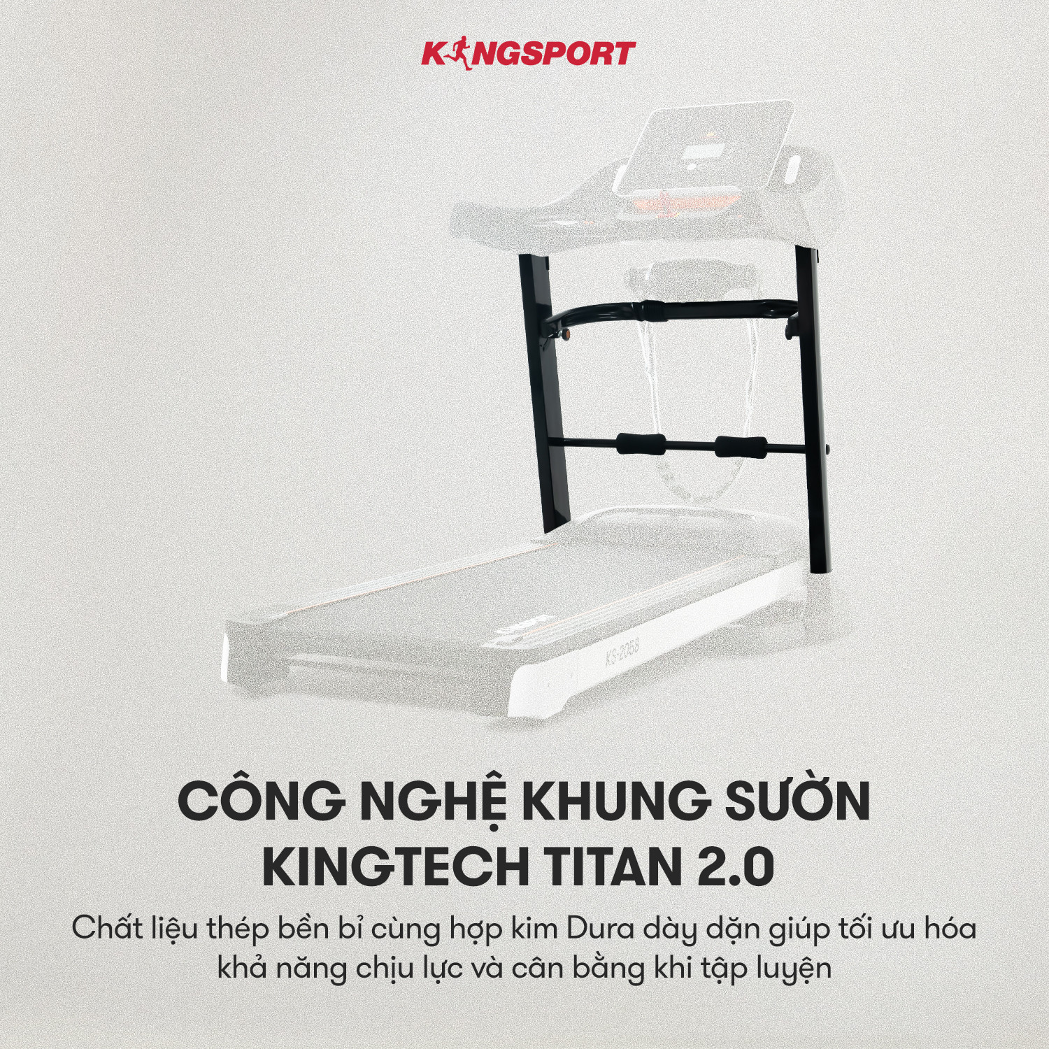 Máy Chạy Bộ KingSport KS-2055 Đa Năng - Chạy Bộ Thả Ga, Cả Nhà Cùng Khỏe ️ Thiết kế sang trọng và hiện đại phù hợp với mọi không gian ️ Khung sườn Kingtech Titan 2.0