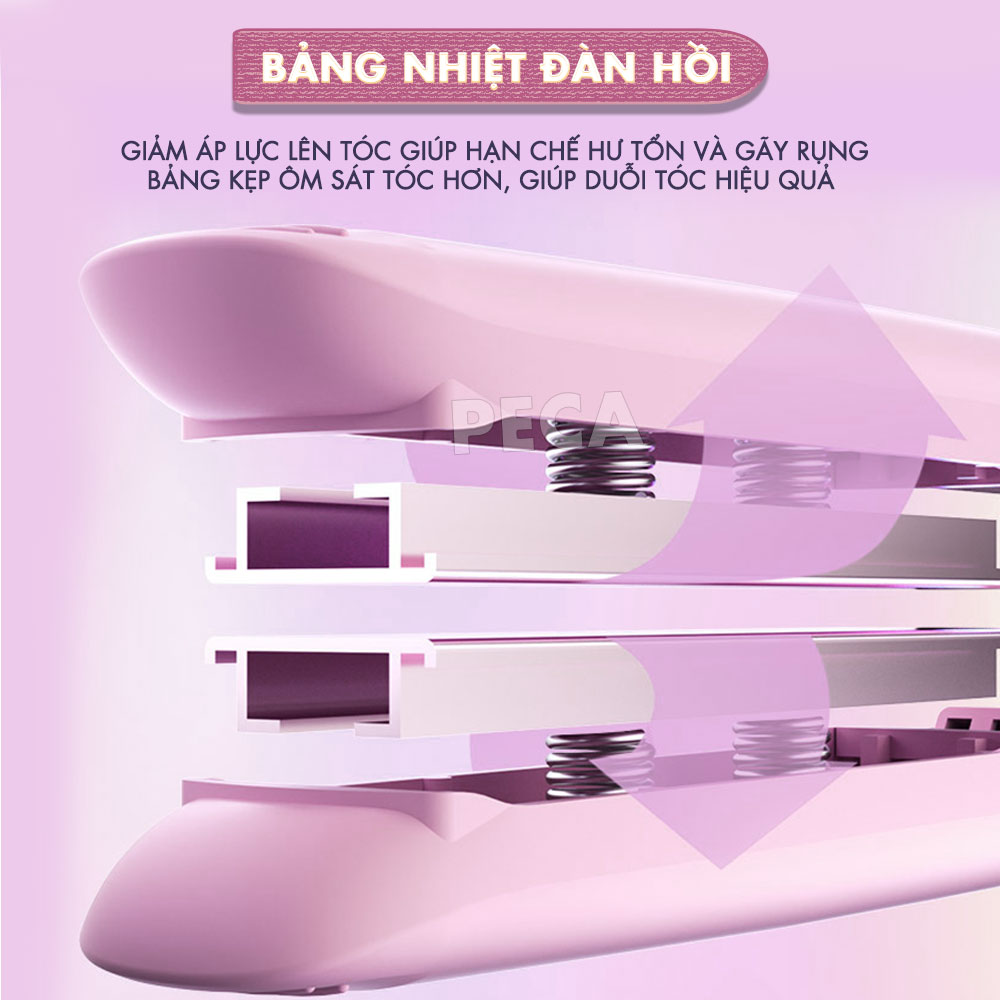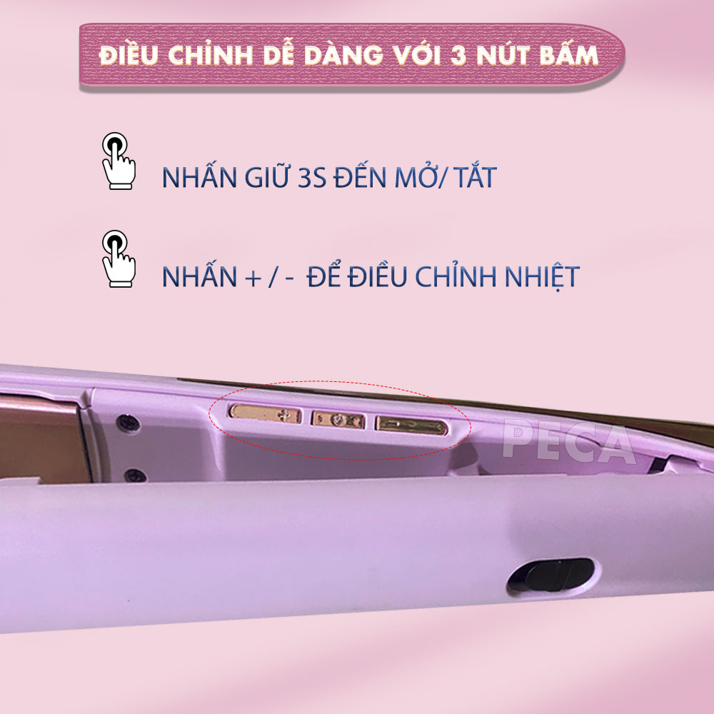 MÁY DUỖI TÓC KEMEI KM-3142 CHUYÊN NGHIỆP ĐIỀU CHỈNH 10 MỨC NHIỆT PHÙ HỢP SỬ DỤNG VỚI MỌI LOẠI TÓC - HÀNG CHÍNH HÃNG Máy duỗi tóc Kemei KM-3142 là sự lựa chọn hoàn hảo cho những ai muốn sở hữu mái tóc thẳng mượt mà như vừa được chăm sóc tại salon ngay tại nhà. Với thiết kế hiện đại, màu sắc dễ thương tông hồng nổi bật, máy không chỉ là một công cụ làm đẹp mà còn là phụ kiện thời trang đẳng cấp. ƯU ĐIỂM NỔI BẬT: Máy duỗi tóc Kemei KM-3142 sử dụng tạo nhiều kiểu tóc chuyên dụng: duỗi thẳng, uốn cụp đuôi,.. 1/ Cấu tạo bảng nhiệt: Cấu tạo ba lớp:
