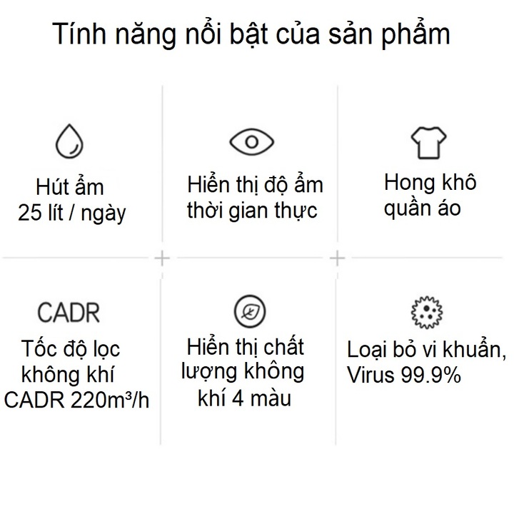 - Ưu điểm mong muốn: Hút ẩm và lọc không khí và loại bỏ hiệu quả các hạt bụi siêu nhỏ độc