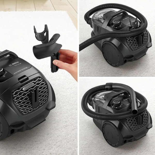 Bosch Series 4 ProPower BGC21X300 tách bụi bẩn ra khỏi luồng không khí để máy hút bụi không bị mất lực hút. Ngay cả khi hộp chứa bụi đã đầy. Bộ lọc có thể được rửa sạch dưới vòi nước. Với đầu hút kết hợp, bạn có thể hút bụi cả sàn cứng và thảm ngắn. Vì bạn có thể điều chỉnh lực hút bằng nút xoay nên có thể hút bụi trên mọi bề mặt. Bụi bẩn sẽ đọng lại trong thùng chứa bụi lớn 2 lít. Sau khi sử dụng, bạn có thể dọn dẹp máy hút bụi để tiết kiệm không gian. Một chiếc kẹp đặc biệt được sử dụng để gắn ống hút bụi vào máy hút bụi. Phụ kiện kết hợp loại bỏ bụi bẩn khỏi các khe và bụi trên đồ nội thất. Bộ lọc HEPA 13 giữ lại 99,95% hạt bụi nên khí thải luôn sạch sẽ. Đầu phun kết hợp loại bỏ bụi bẩn trên cả sàn cứng và thảm ngắn. Công suất 2000W